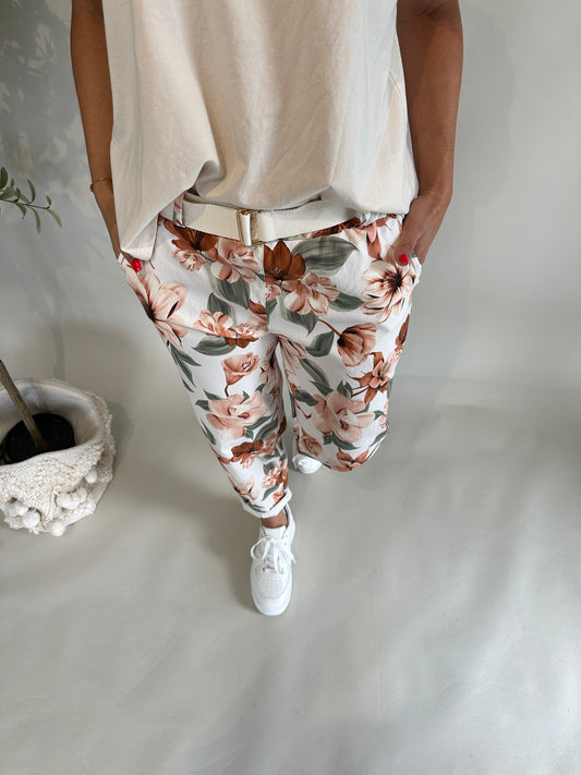 Hose in Wollweiß (Samtoptik) mit Gürtel