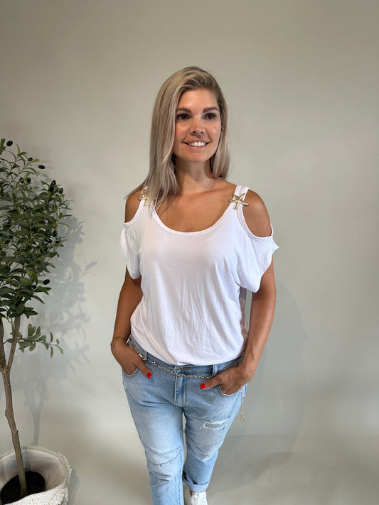Top in Weiß mit 2 goldenen Spangen und dünnen Trägern (Bauchfrei)