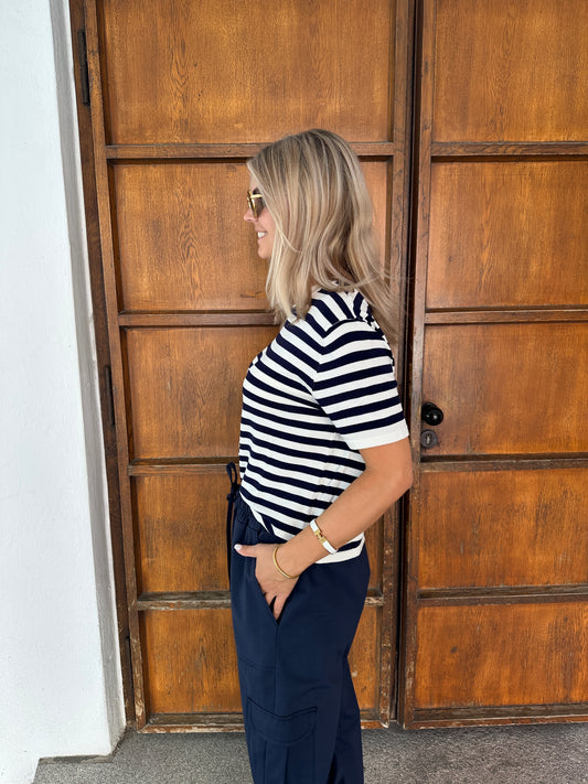Pullover in Dunkelblau/Weiß gestreift (Kurzarm)