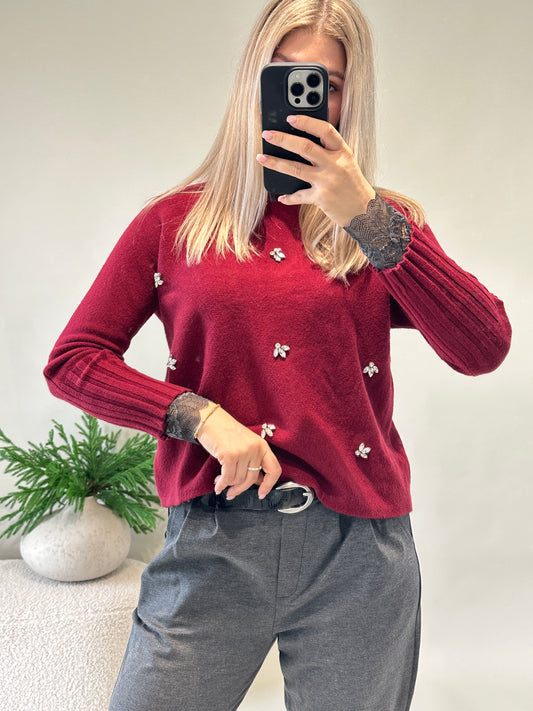 Pullover in Burgundy mit Glitzersteinen vorne