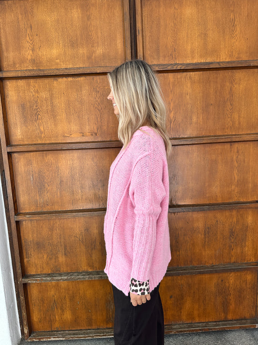 Pullover in Leo (Schokobraun/ Beige) mit Rückenaufdruck NEW YORK