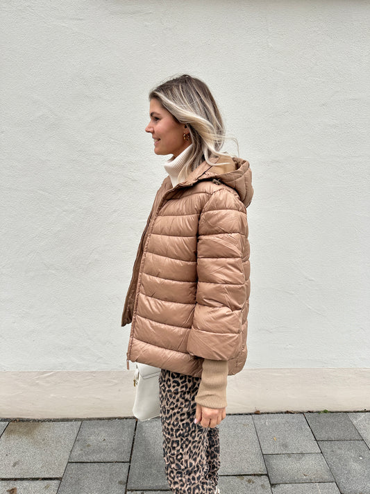 Steppweste in Beige ärmelos mit Kapuze und Perlen vorne