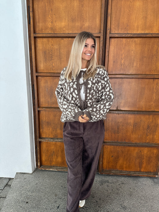 Strickjacke in Braun/Wollweiß vorne zum Binden