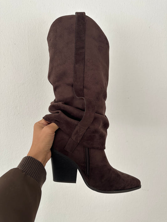 Stiefel in Schokobraun in Wildlederoptik