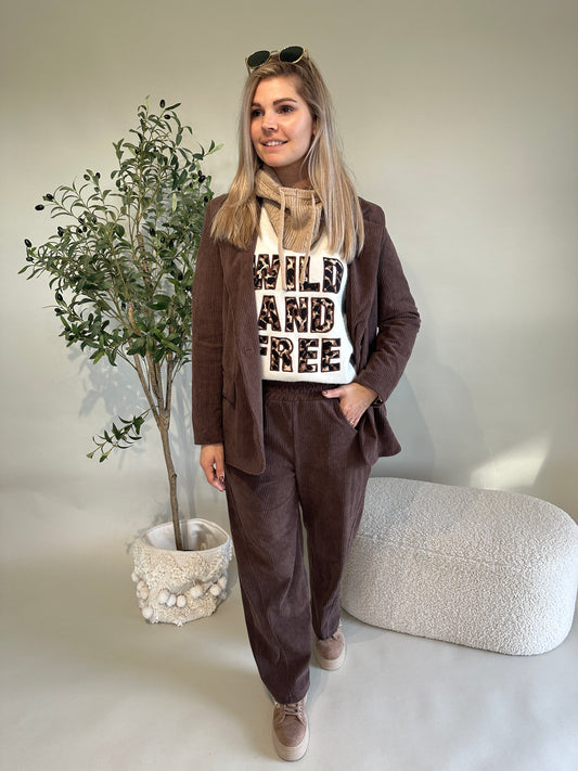 Blazer mit Fischgrätmuster Schokobraun mit Glitzeraufschrift