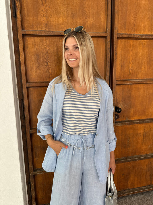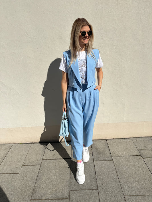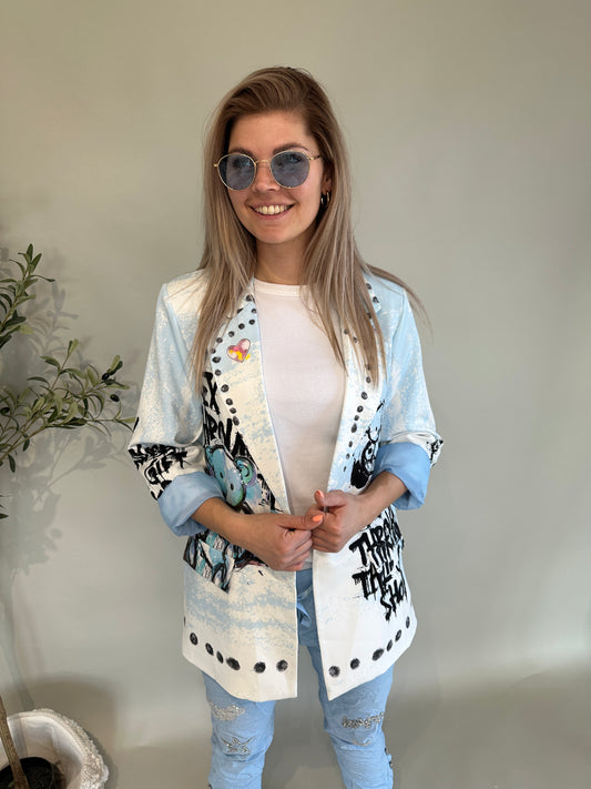 Blazer in Hellblau/Weiß mit buntem Aufdruck