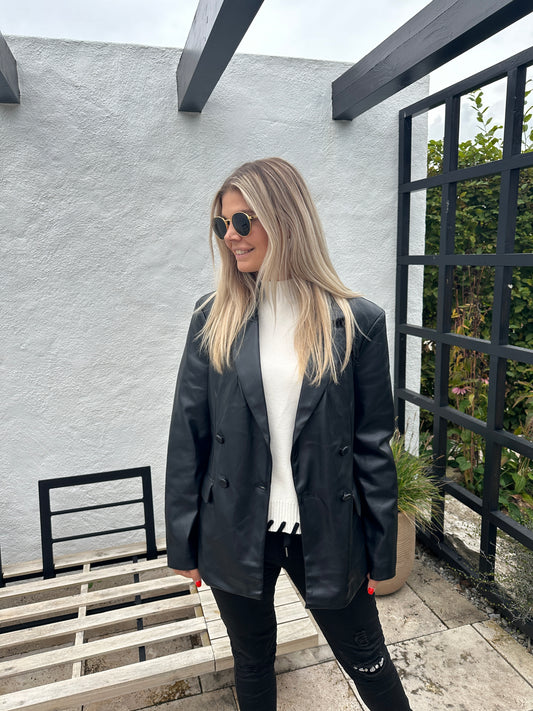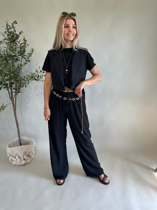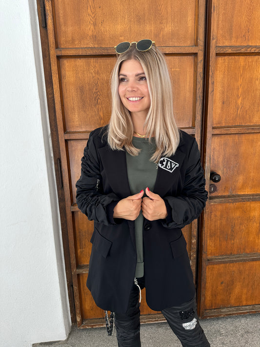 Blazer in Schwarz mit gerafften Ärmel und Glitzerapplikation