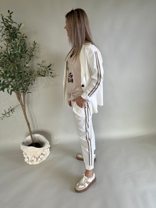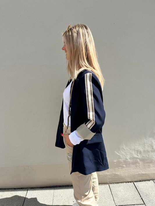 Blazer in Zimt mit Strickeinsatz (Wollweiß/Schwarz) am Arm