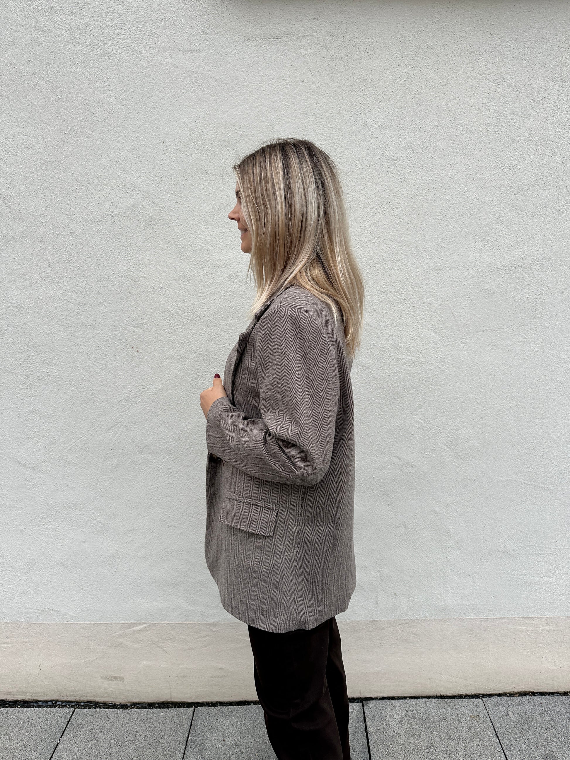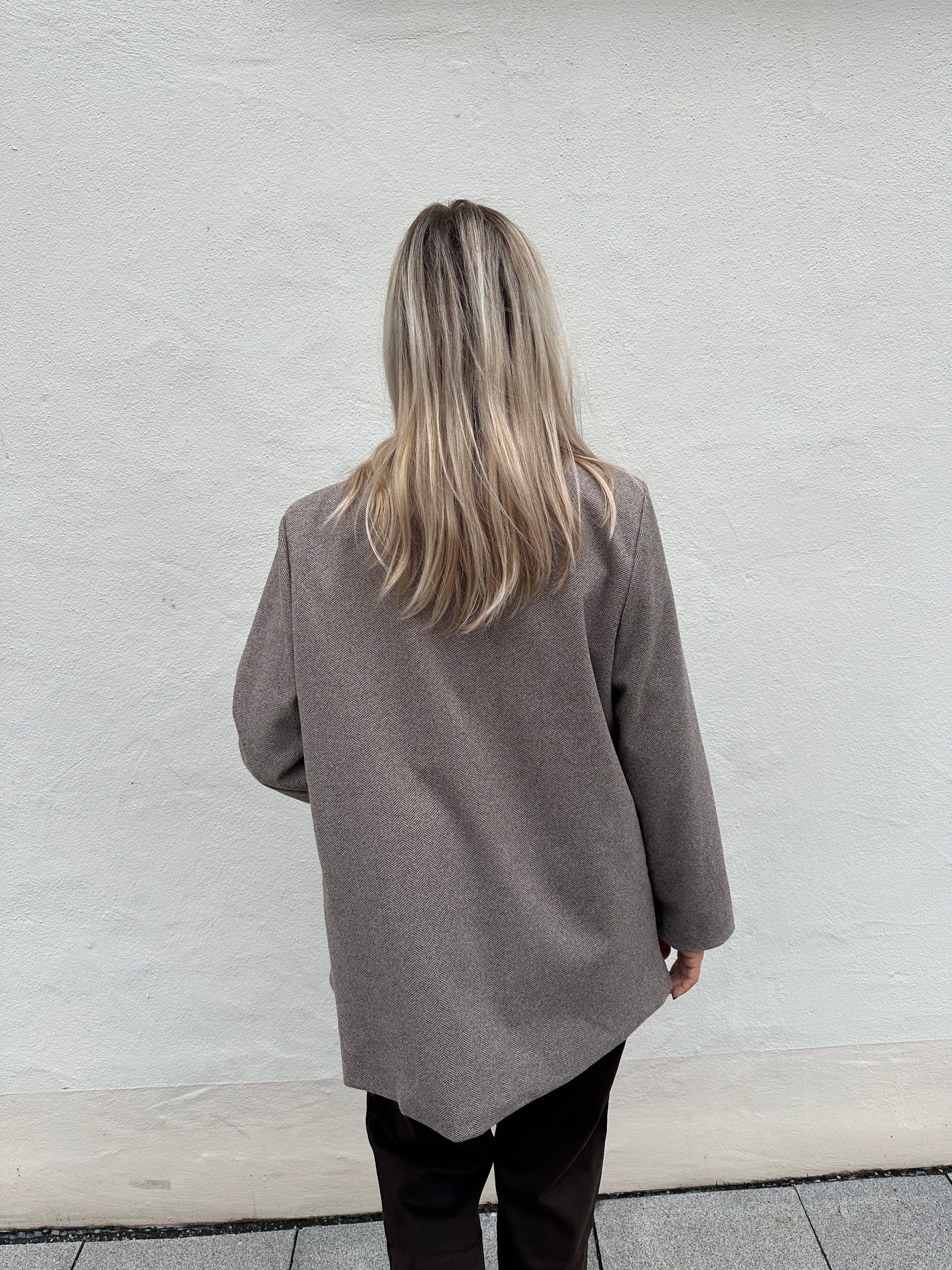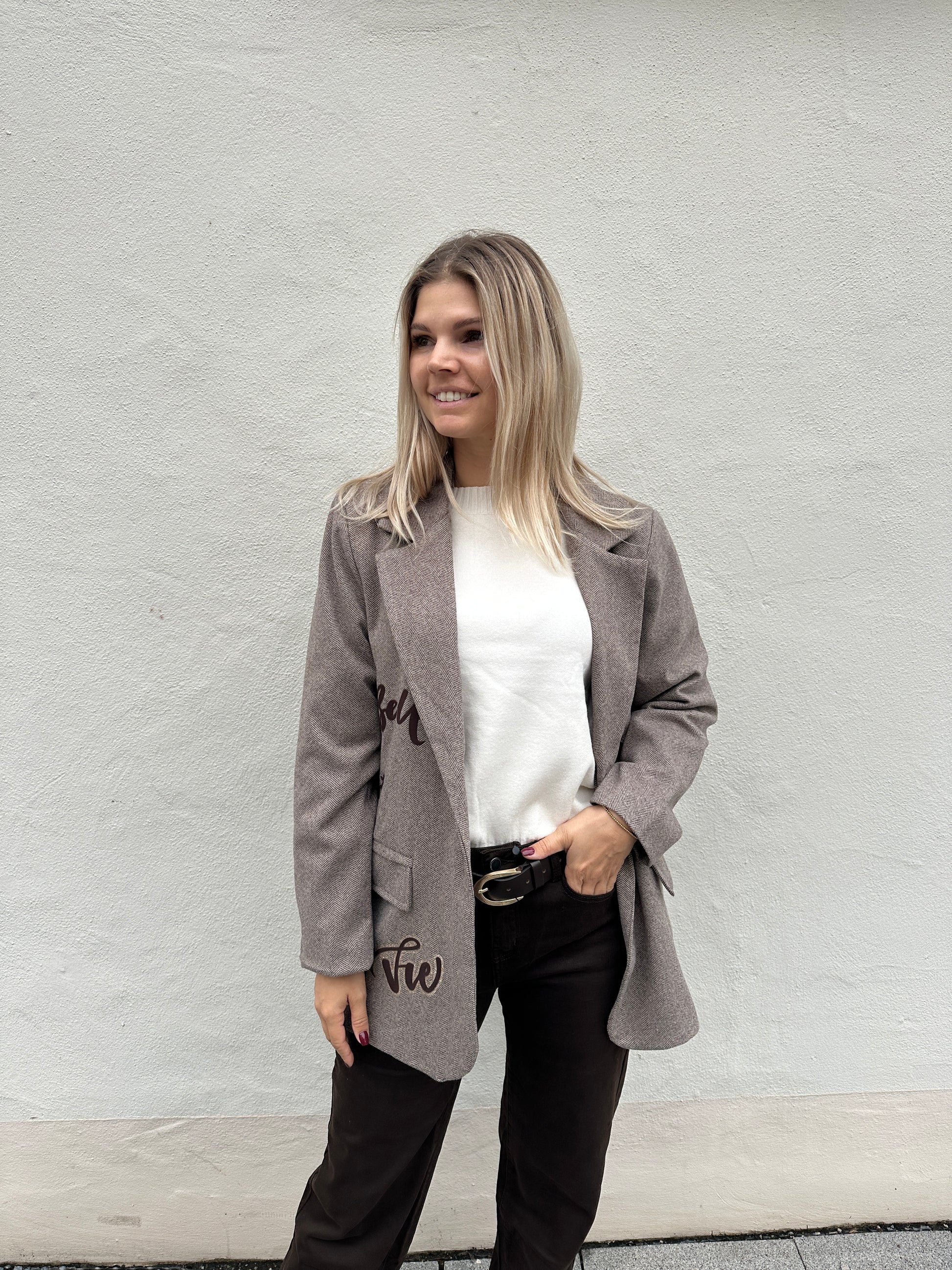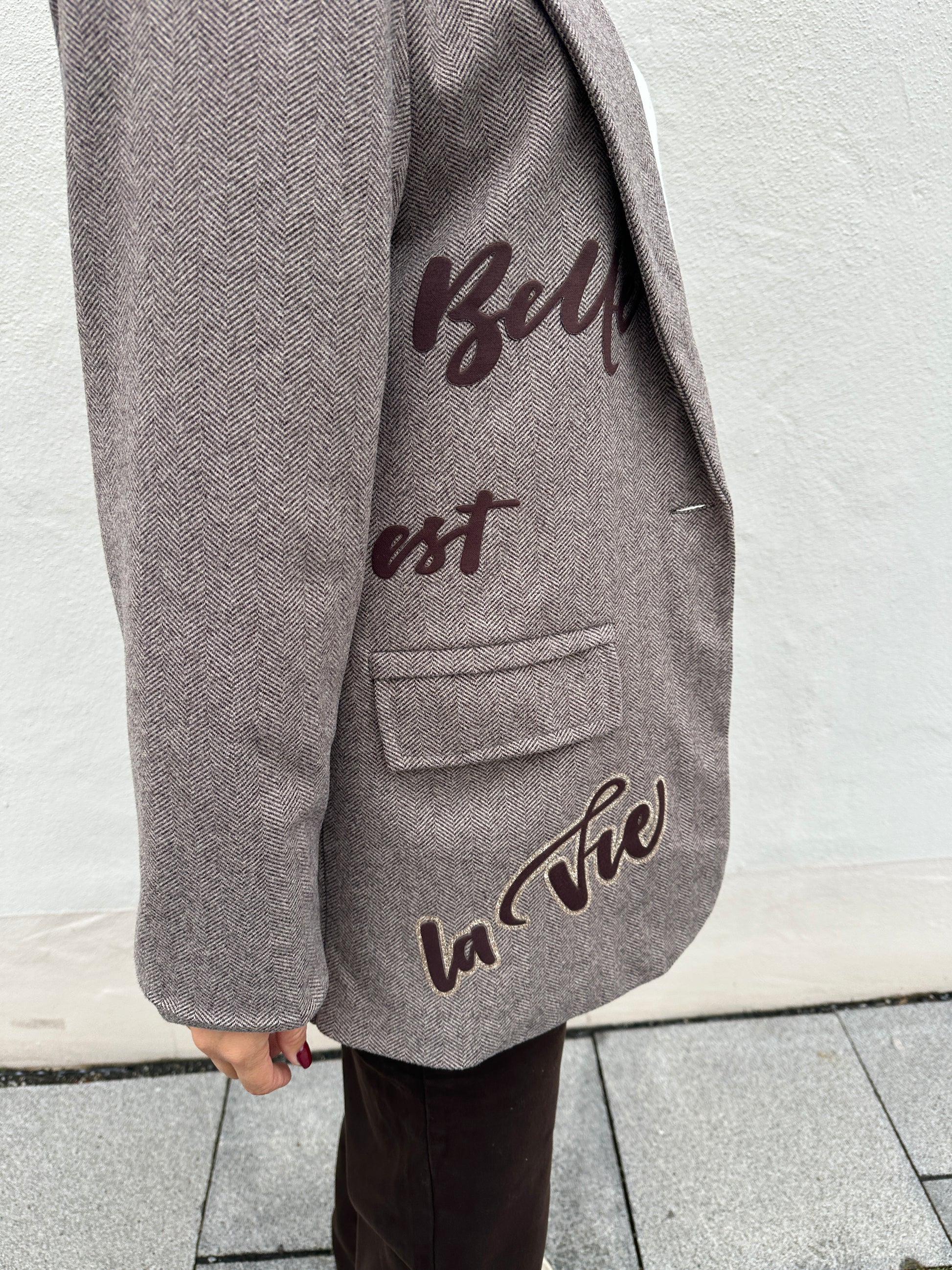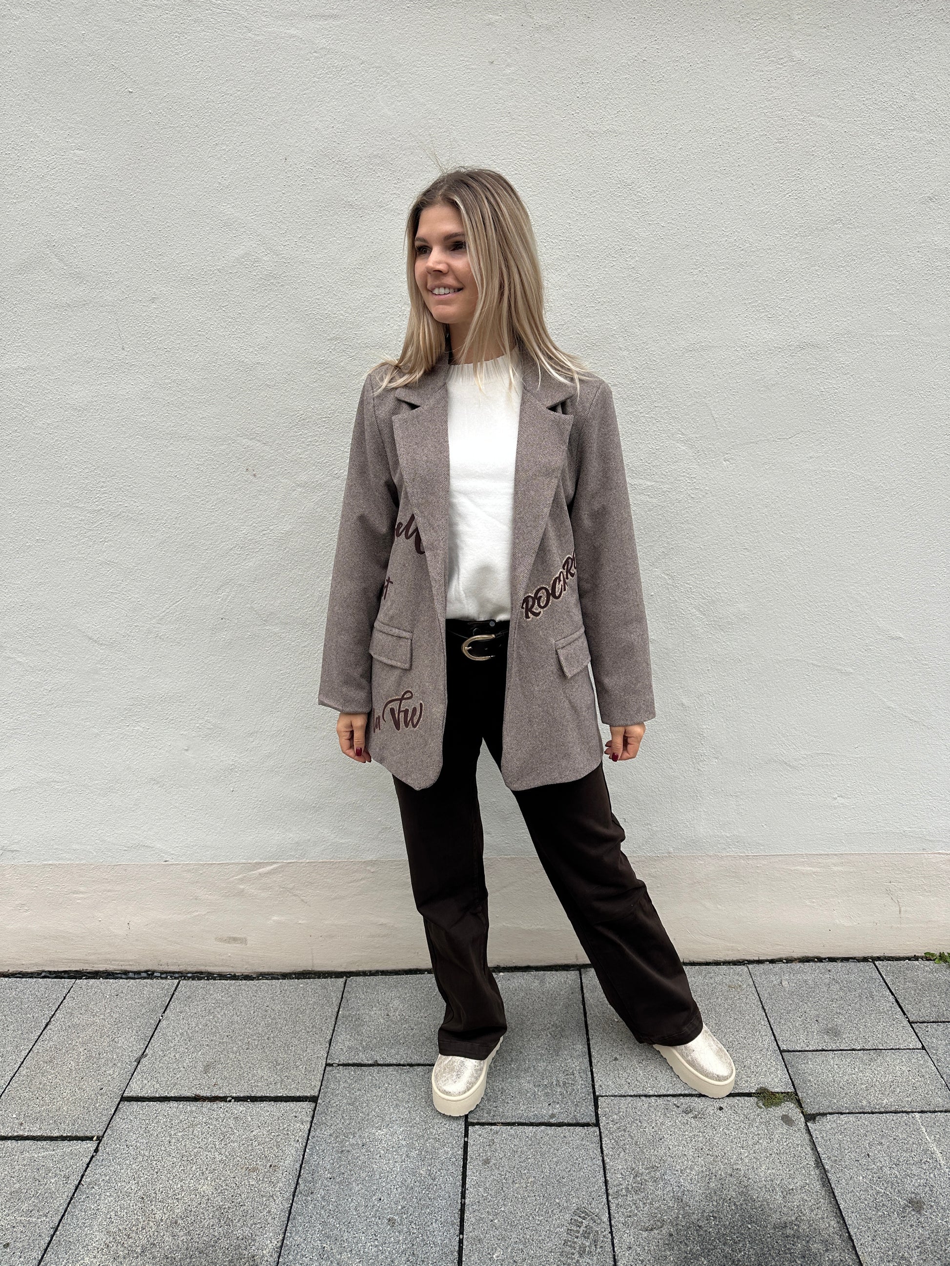 Blazer mit Fischgrätmuster Schokobraun mit Glitzeraufschrift