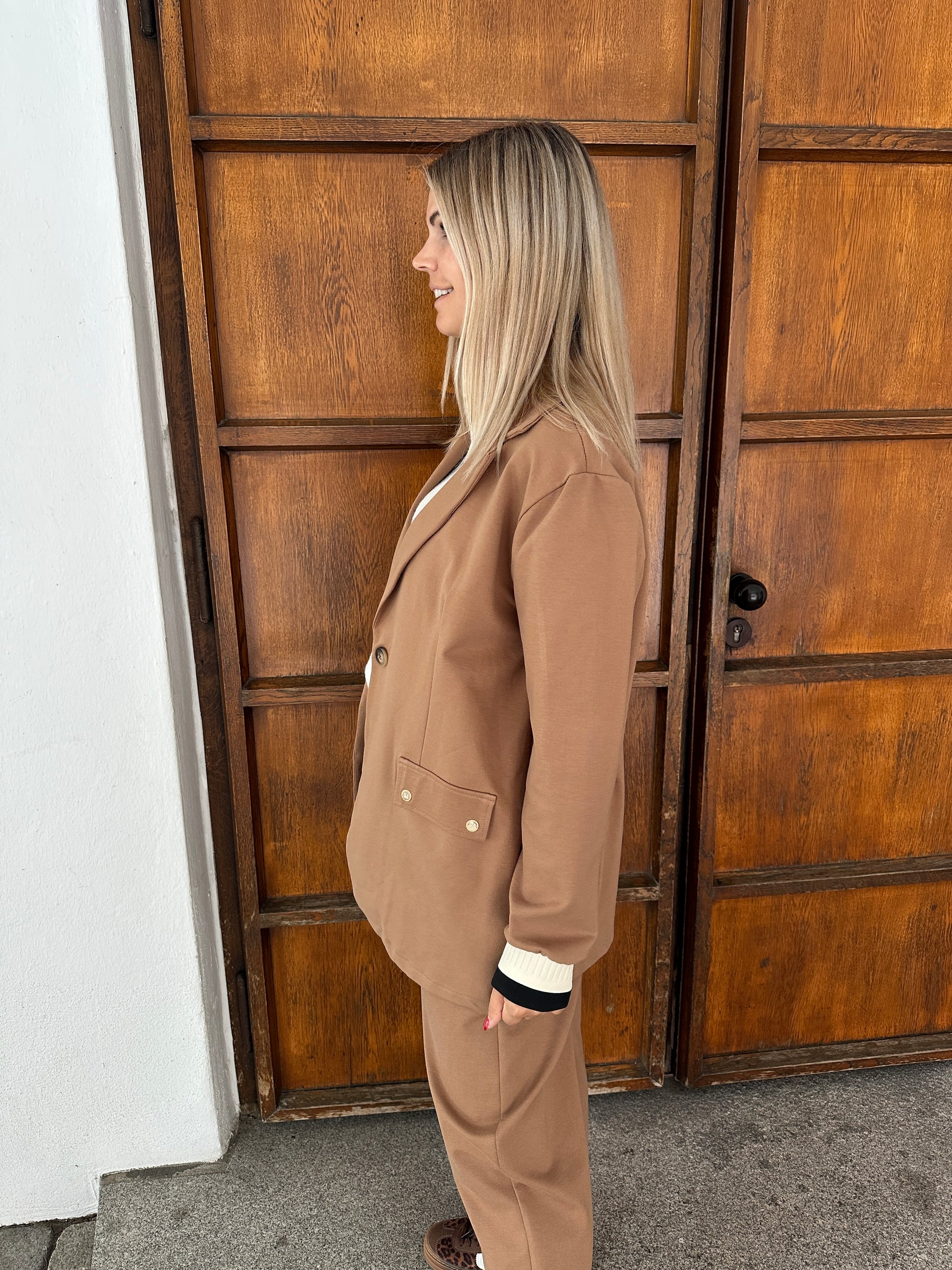 Blazer in Zimt mit Strickeinsatz (Wollweiß/Schwarz) am Arm