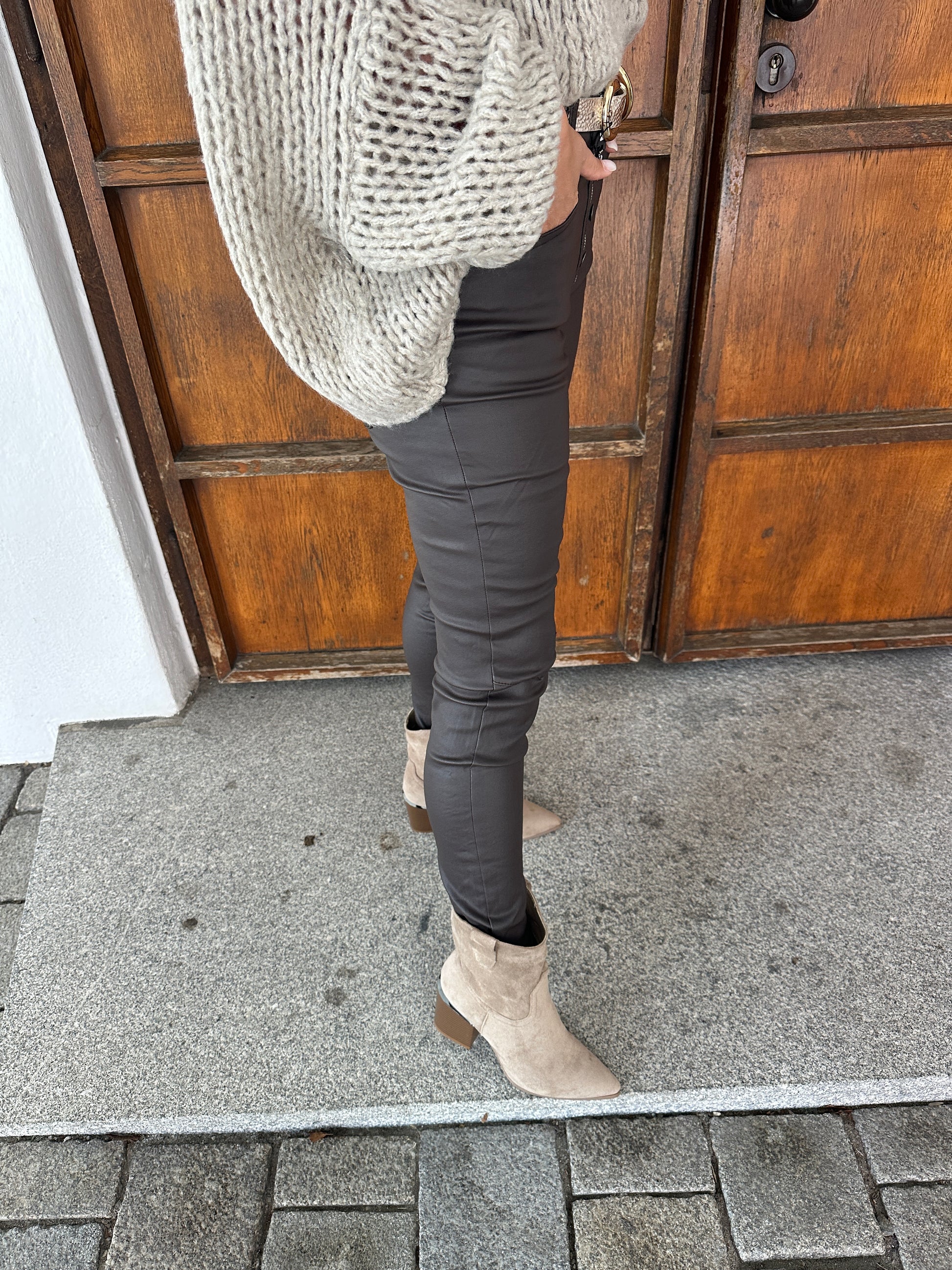 Hose in Schokobraun (Lederimitat) mit Reißverschluss und Knöpfen