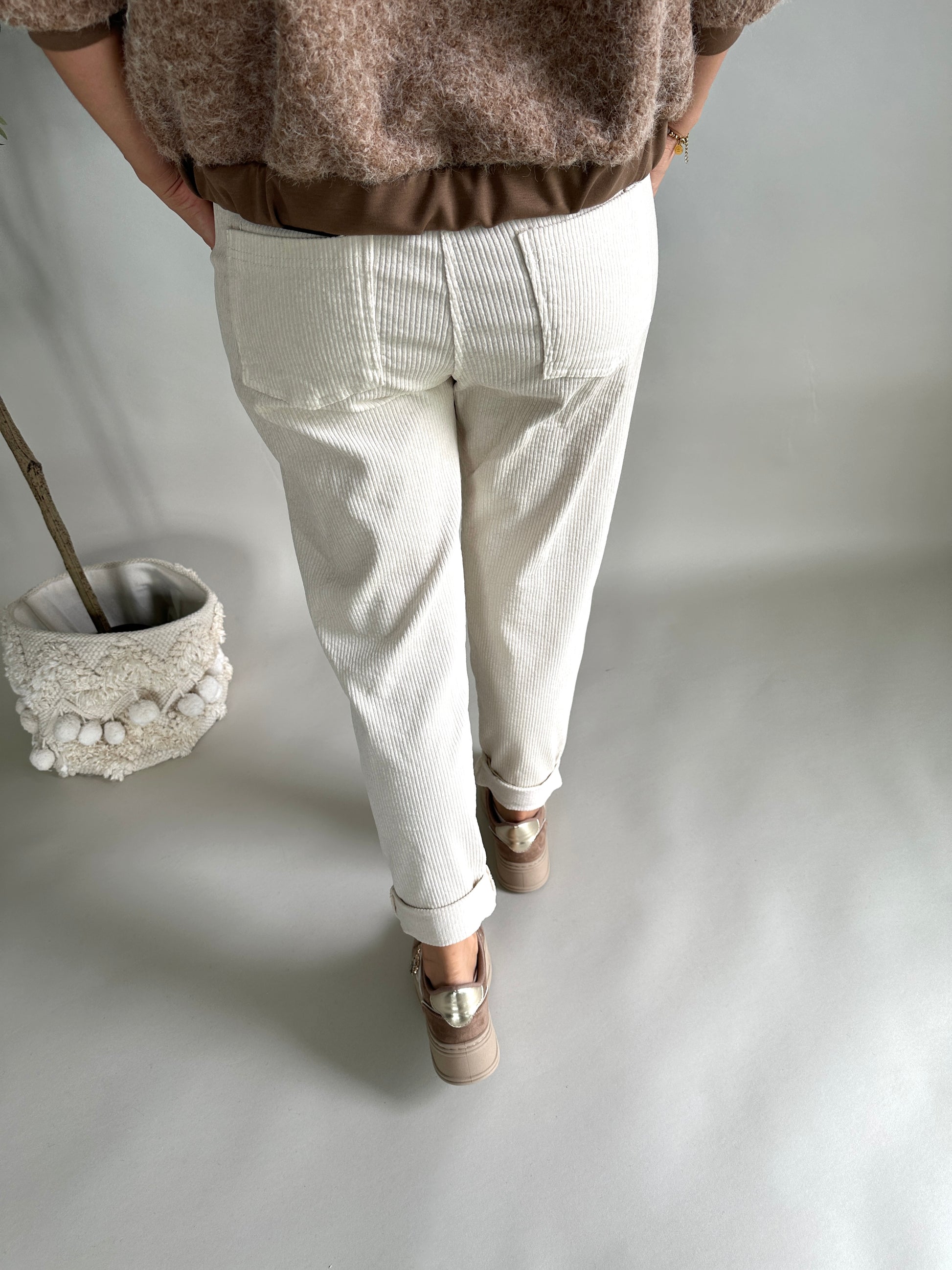 Hose in Wollweiß mit Gürtel ( Cord )