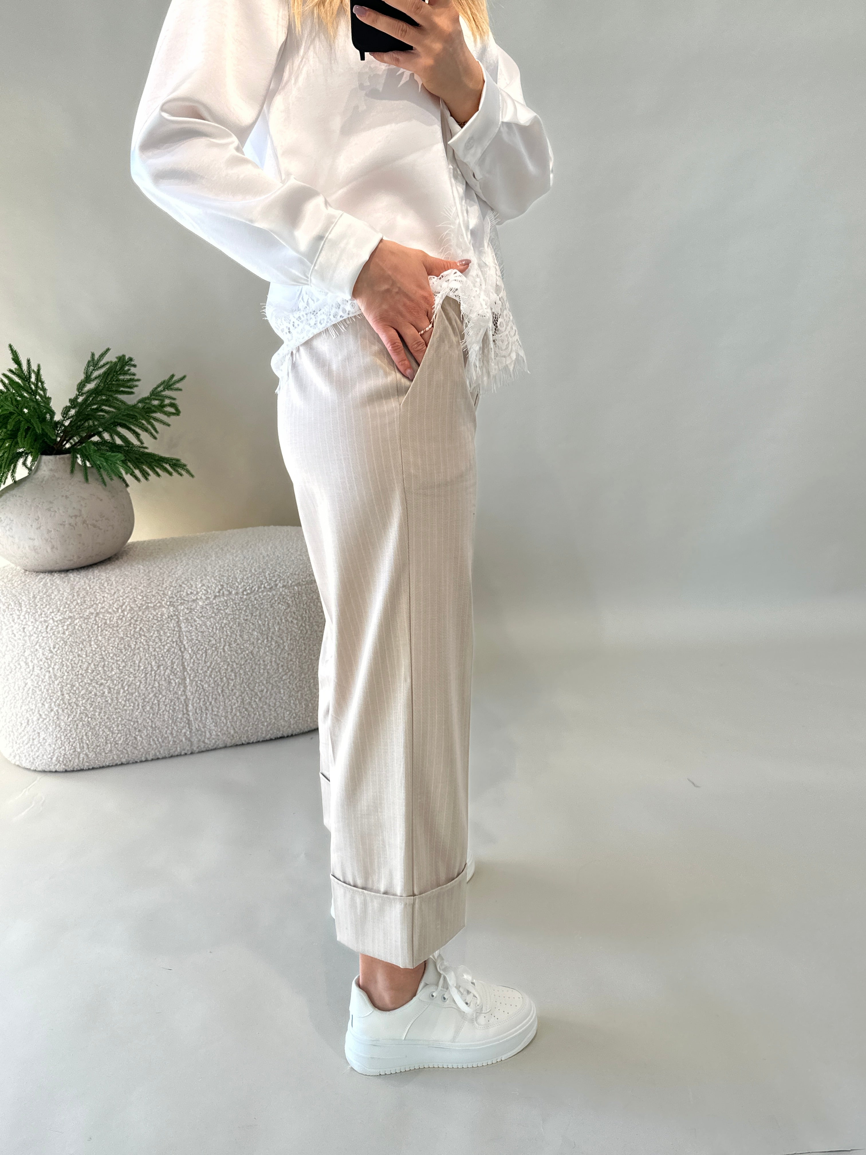 Hose in Zimt mit Nadelstreifen