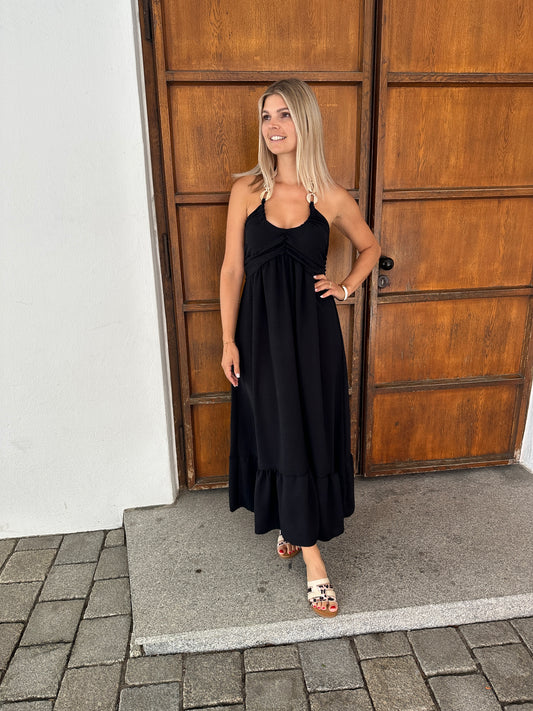 Kleid in Schwarz (Neckholder) mit Perlmutt-Schmuck vorne