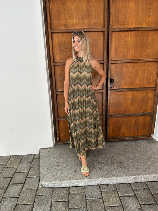 Kleid in Olivgrün mit Zick Zack Muster