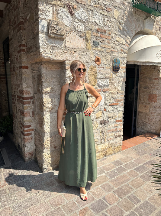 Kleid Beige/ Olivgrün mit Dünnen Trägern
