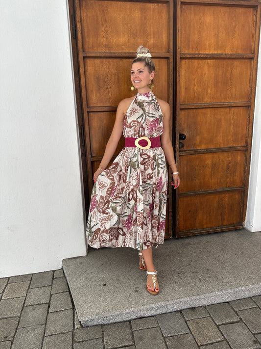 Kleid Beige/Weinrot mit Dünnen Trägern