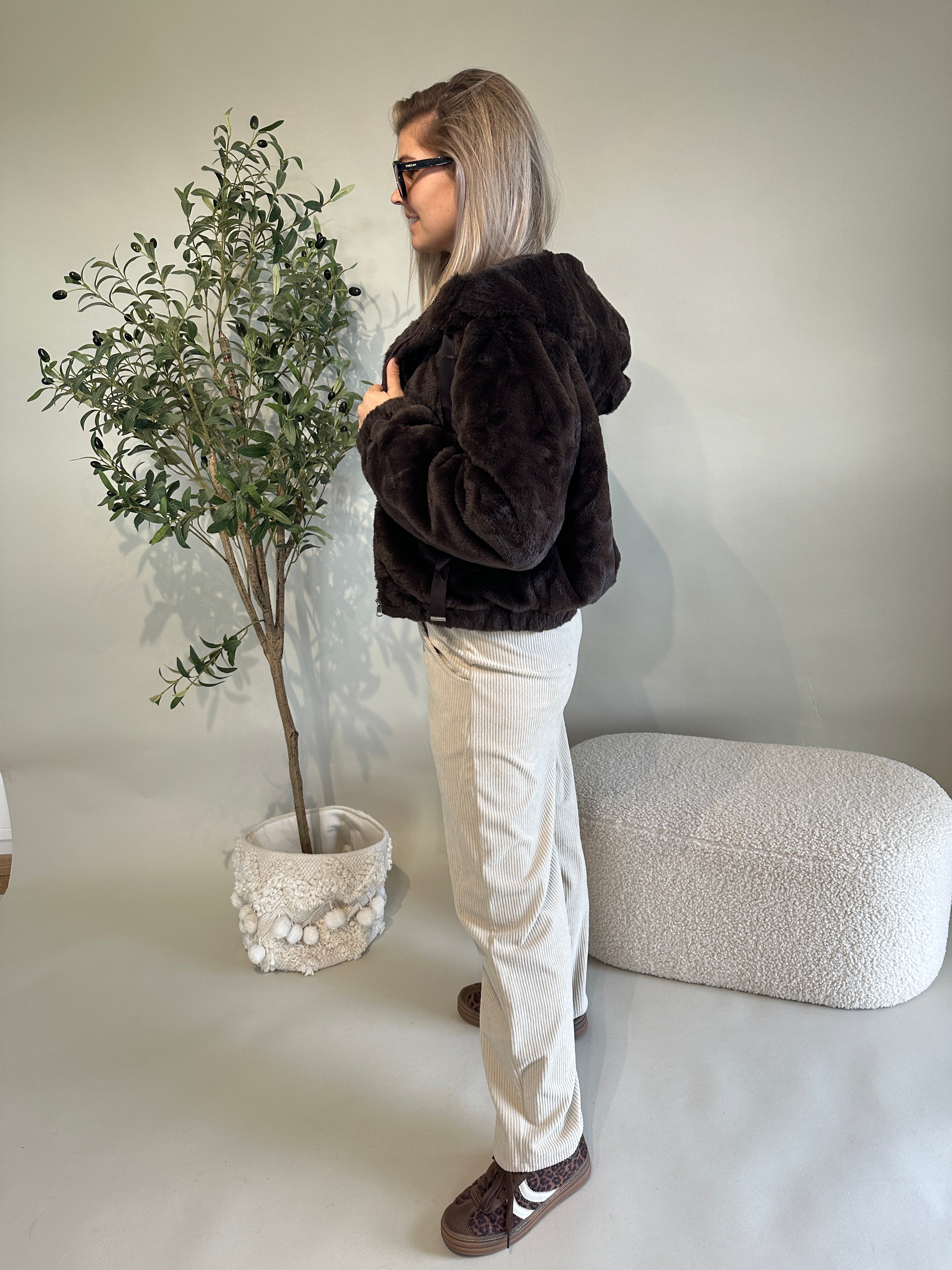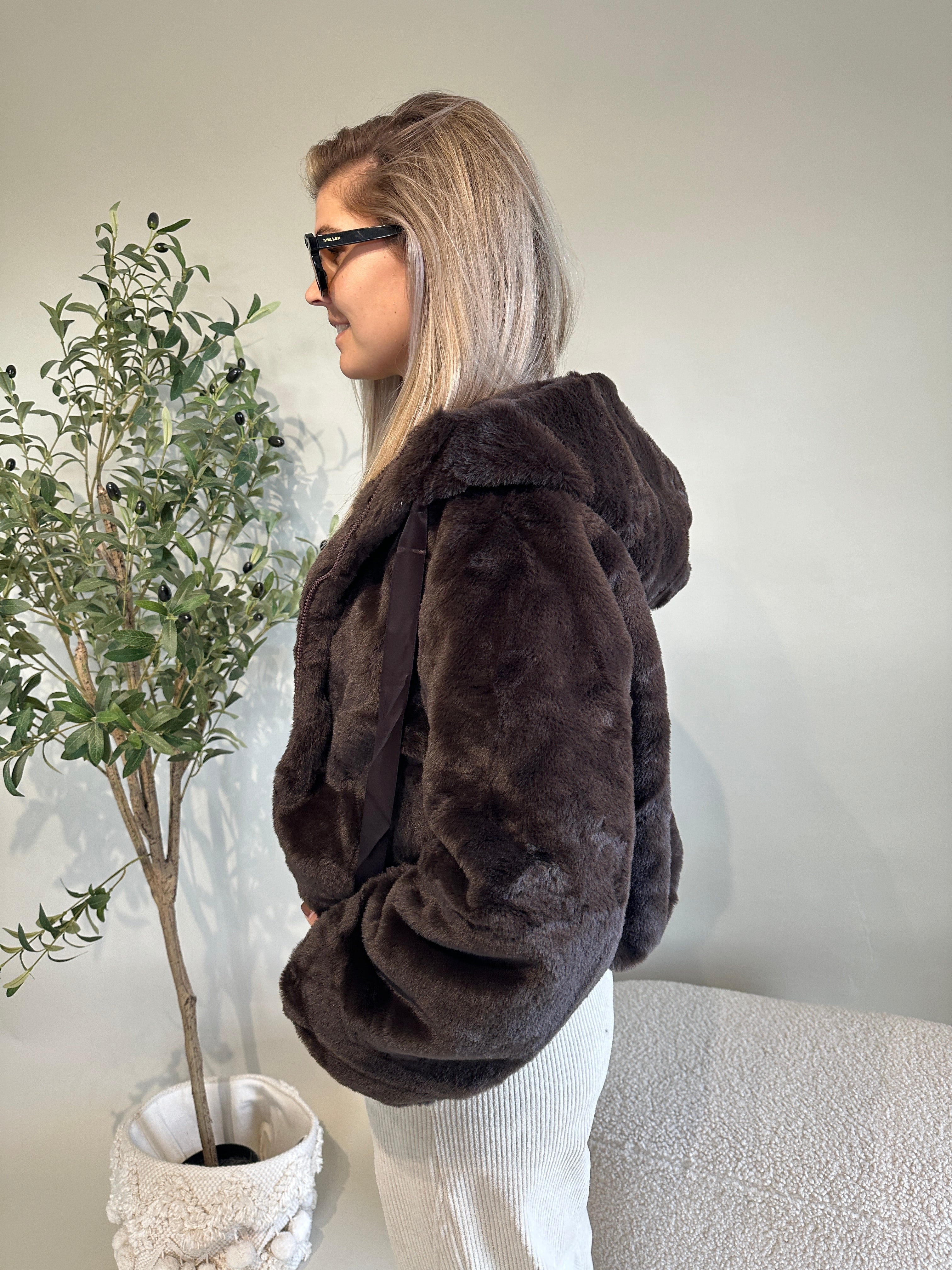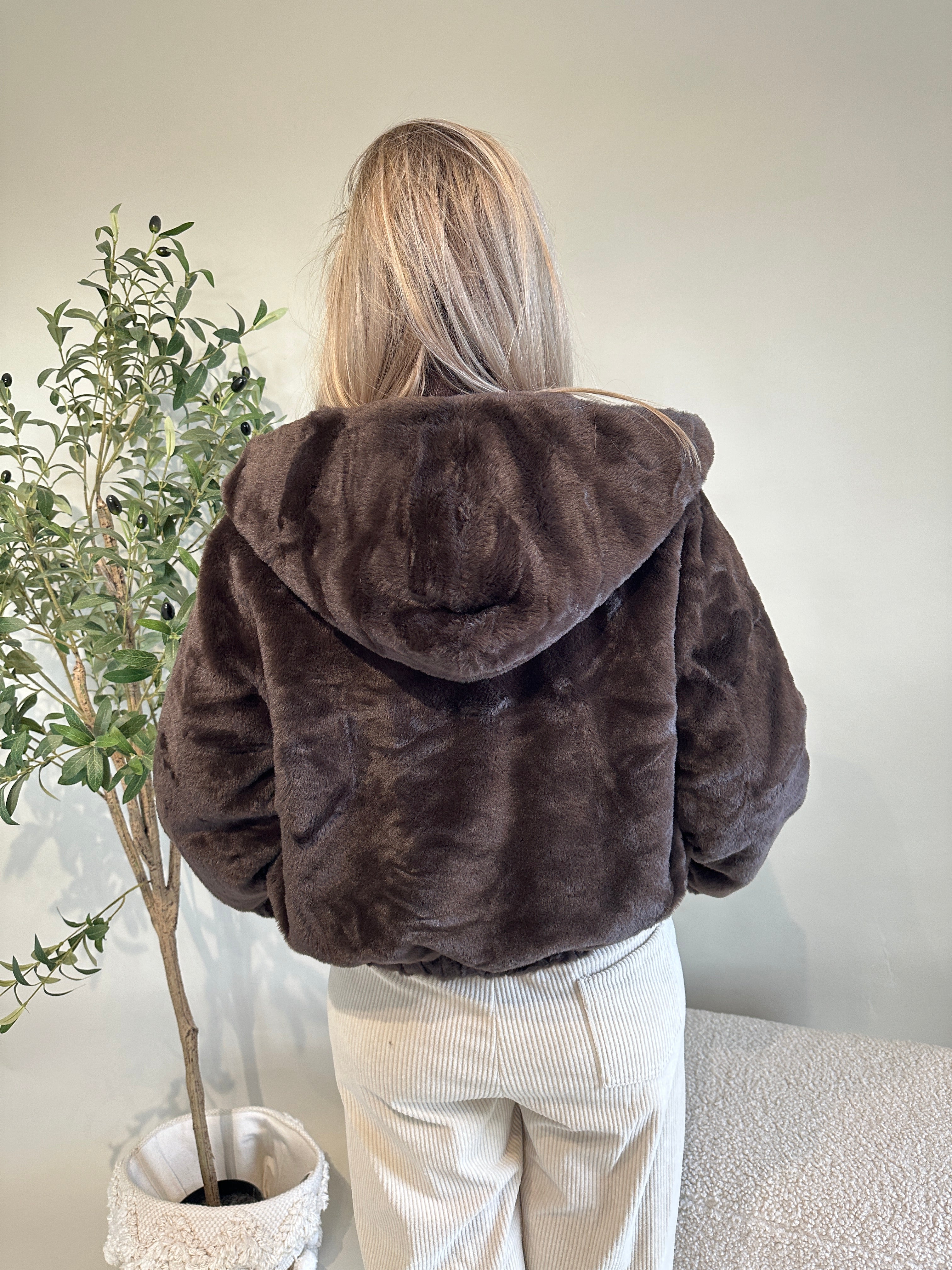 Felljacke in Schokobraun mit Kapuze
