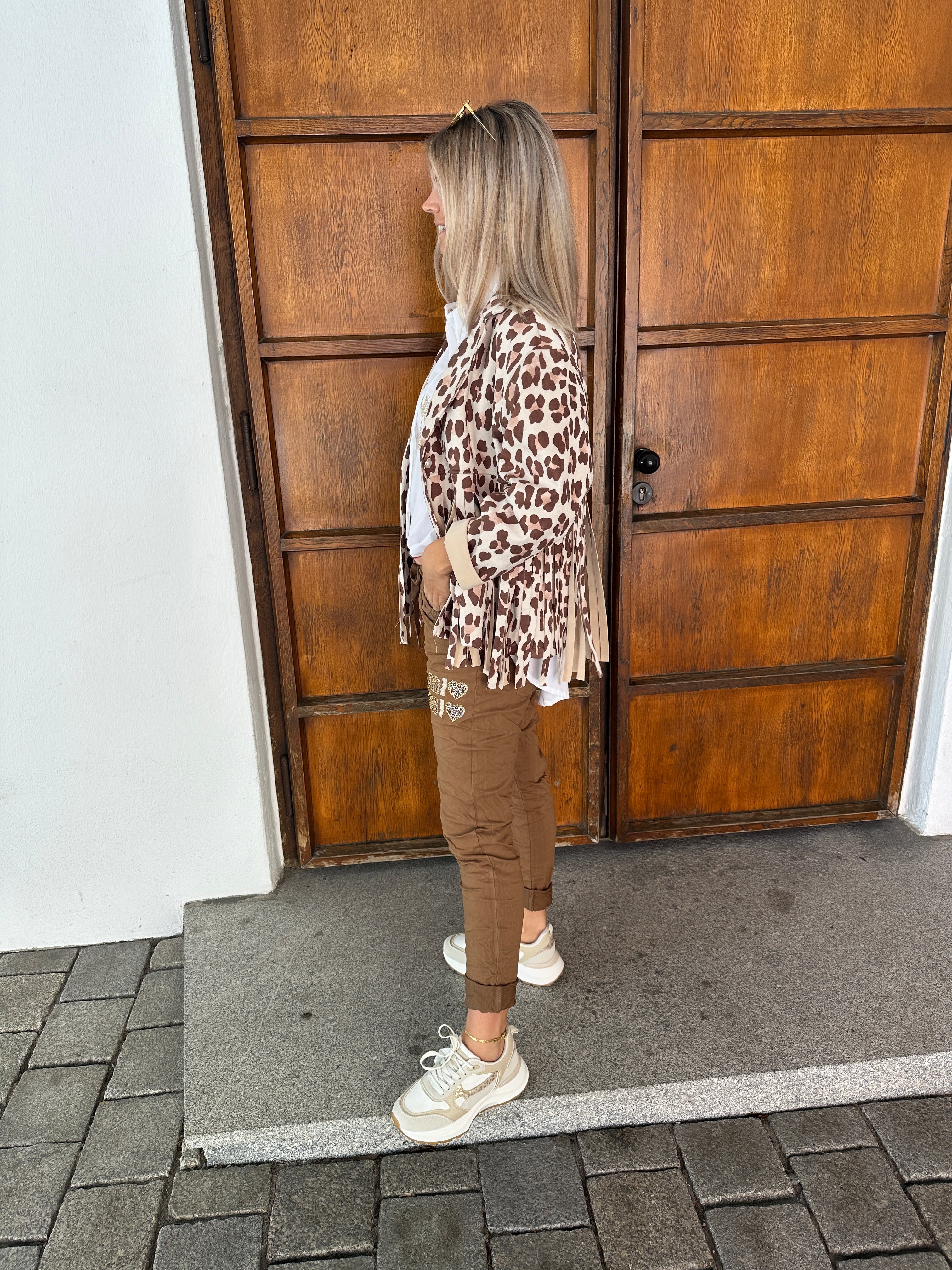 Jacke in Leo (Braun/Beige) mit Fransen