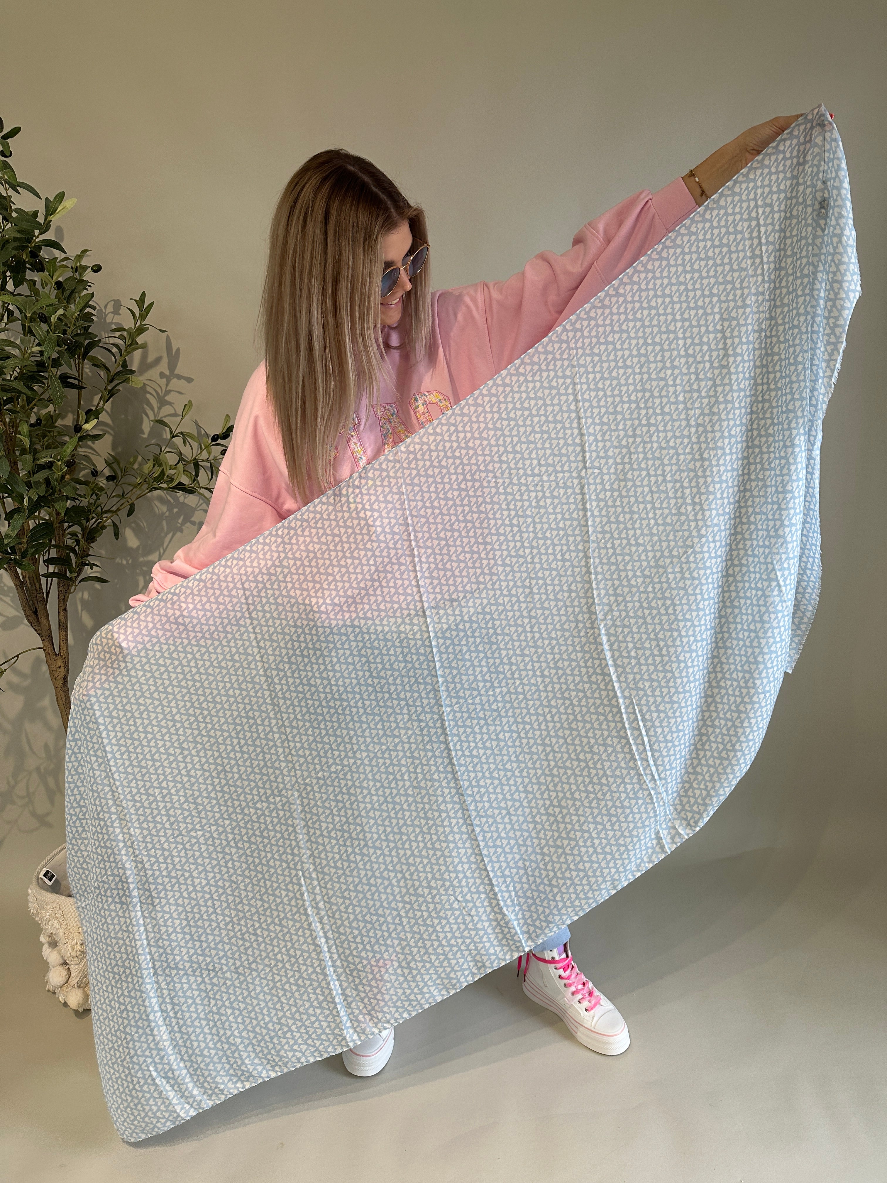 • Schal mit Herzen in Hellblau