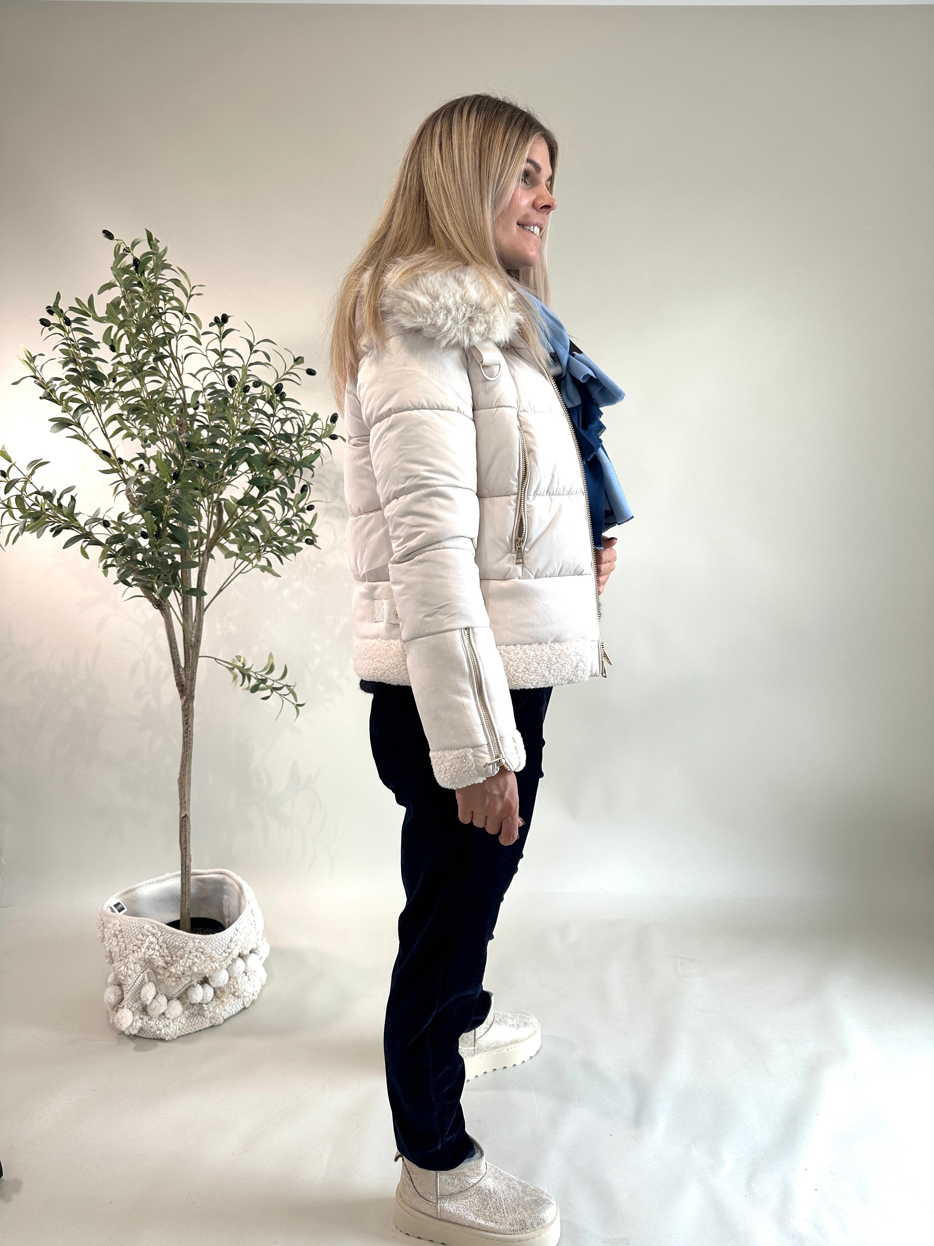 Winterjacke in Wollweiß mit Kunstpelzkragen
