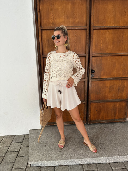 Pullover in Wollweiß Kurzarm/ Stehkragen
