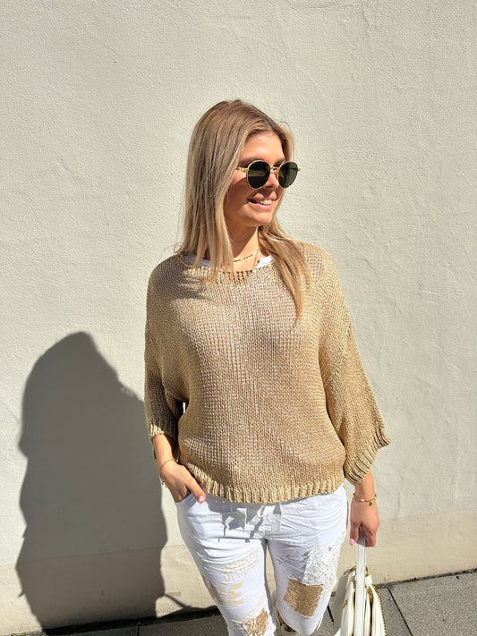 Pullover in Braun/Leo mit Aufschrift in Beige (CIAO! )
