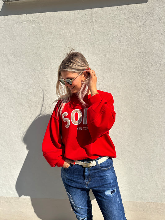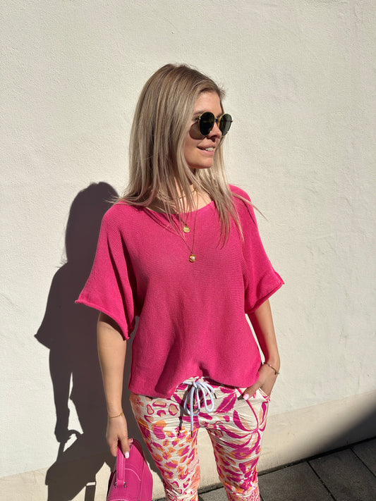 Pullover in Bordorot mit Knopfleiste am Rücken