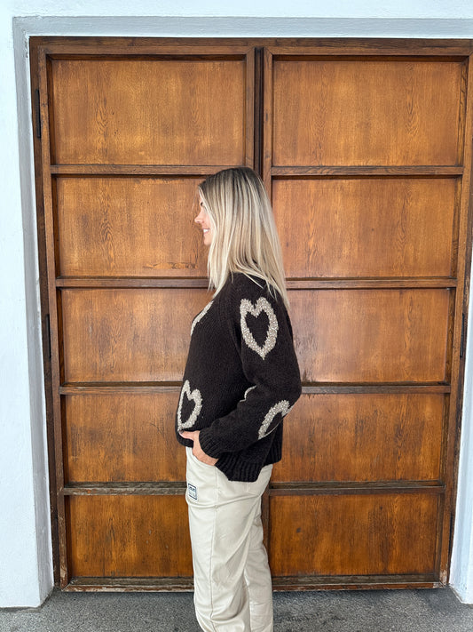 Pullover in Schokobraun mit Herzen