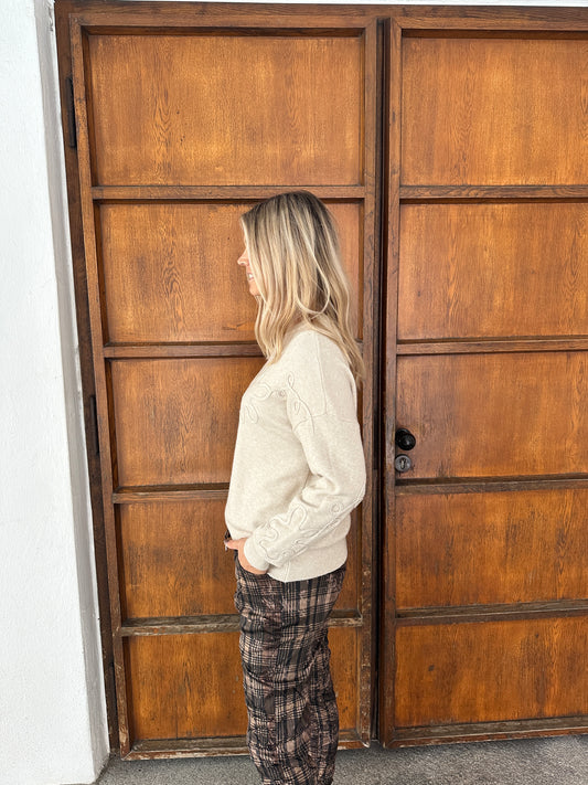 Pullover in Beige mit Blumen