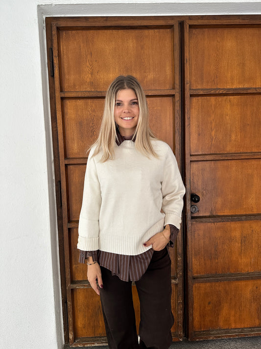 Pullover in Wollweiß mit Knöpfe am Arm