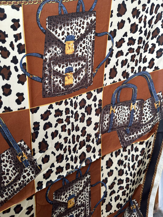 Schal ( Halstuch) in Schokobraun/Beige/Wollweiß mit Leo