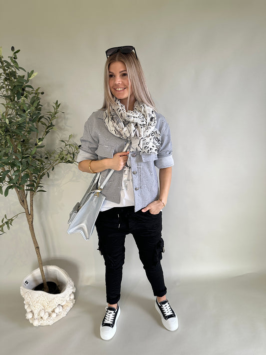 Schal in Grau/Schwarz/ Weiß mit Leomuster