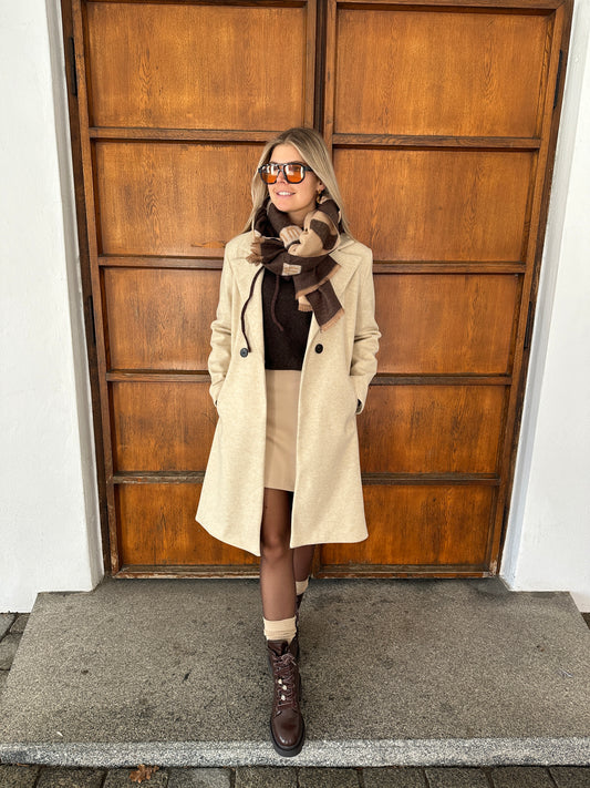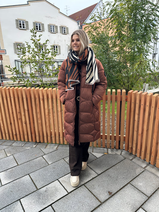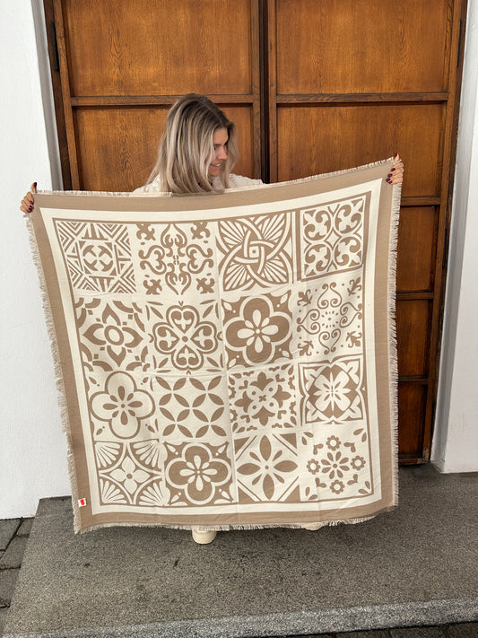 Schal in Schokobraun/Beige mit Leo und Blumen