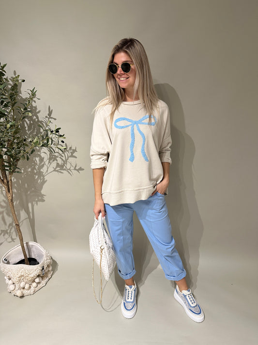 Shirt in Beige mit Hellblauen Aufnährer vorne