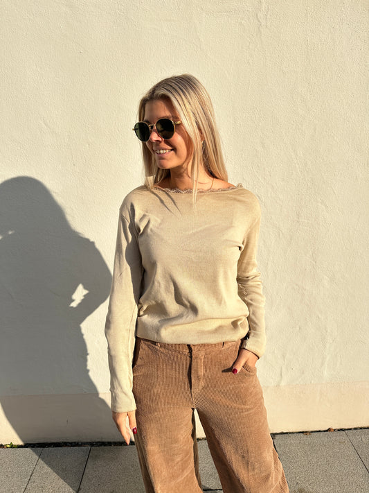 Shirt mit Spitze in Cognac