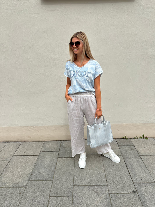 Shirt gemuster in Hellblau mit Aufschrift (Dior)