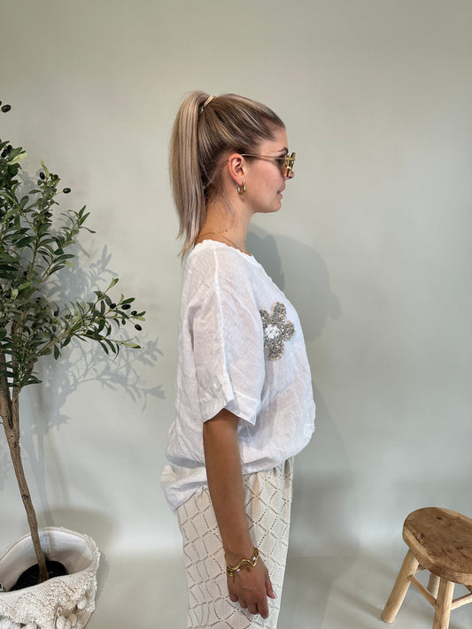 Shirt in Weiß mit Glitzer-Blumen