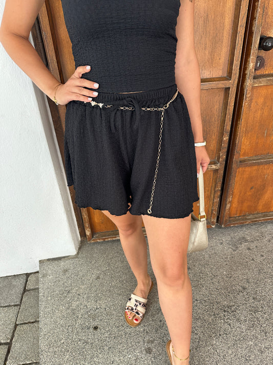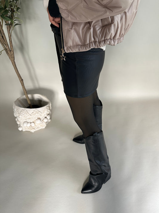 Hosen-Rock(Skort) in Schwarz Kunstleder mit goldener Spange