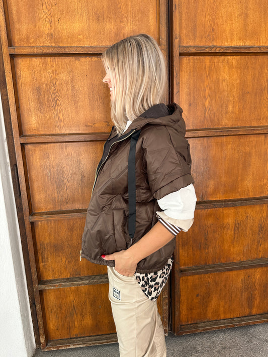 Steppweste mit Muster in Schokobraun (kurzarm) und Kapuze