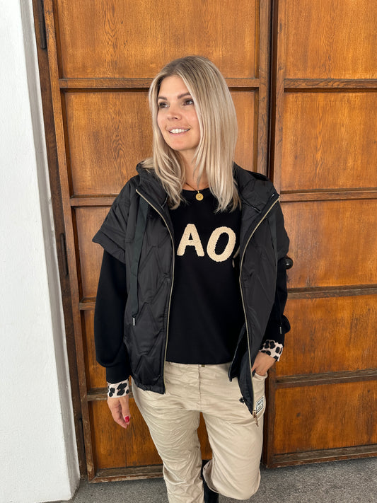 Steppweste mit Muster in Schwarz (kurzarm) und Kapuze