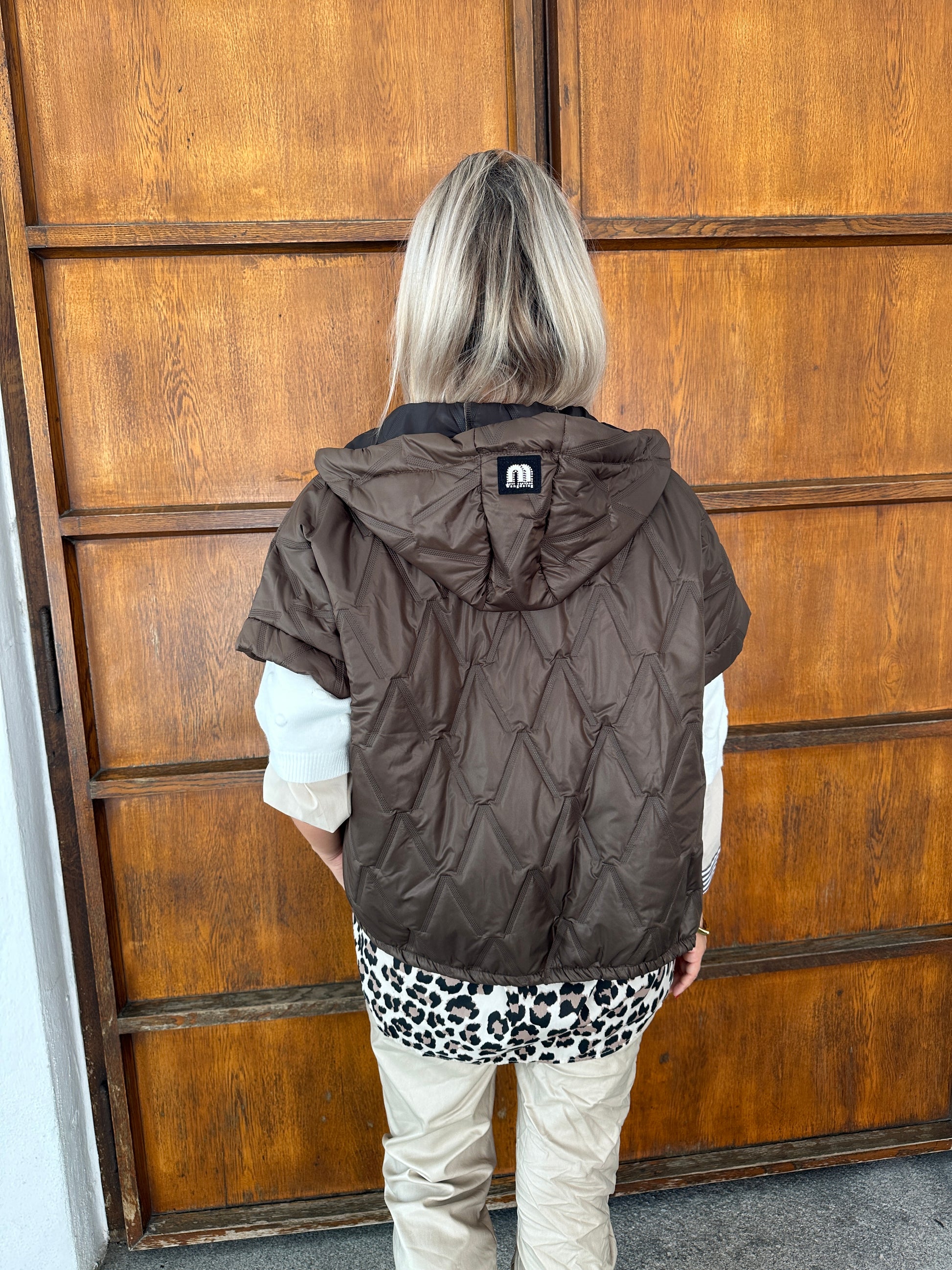 Steppweste mit Muster in Schokobraun (kurzarm) und Kapuze