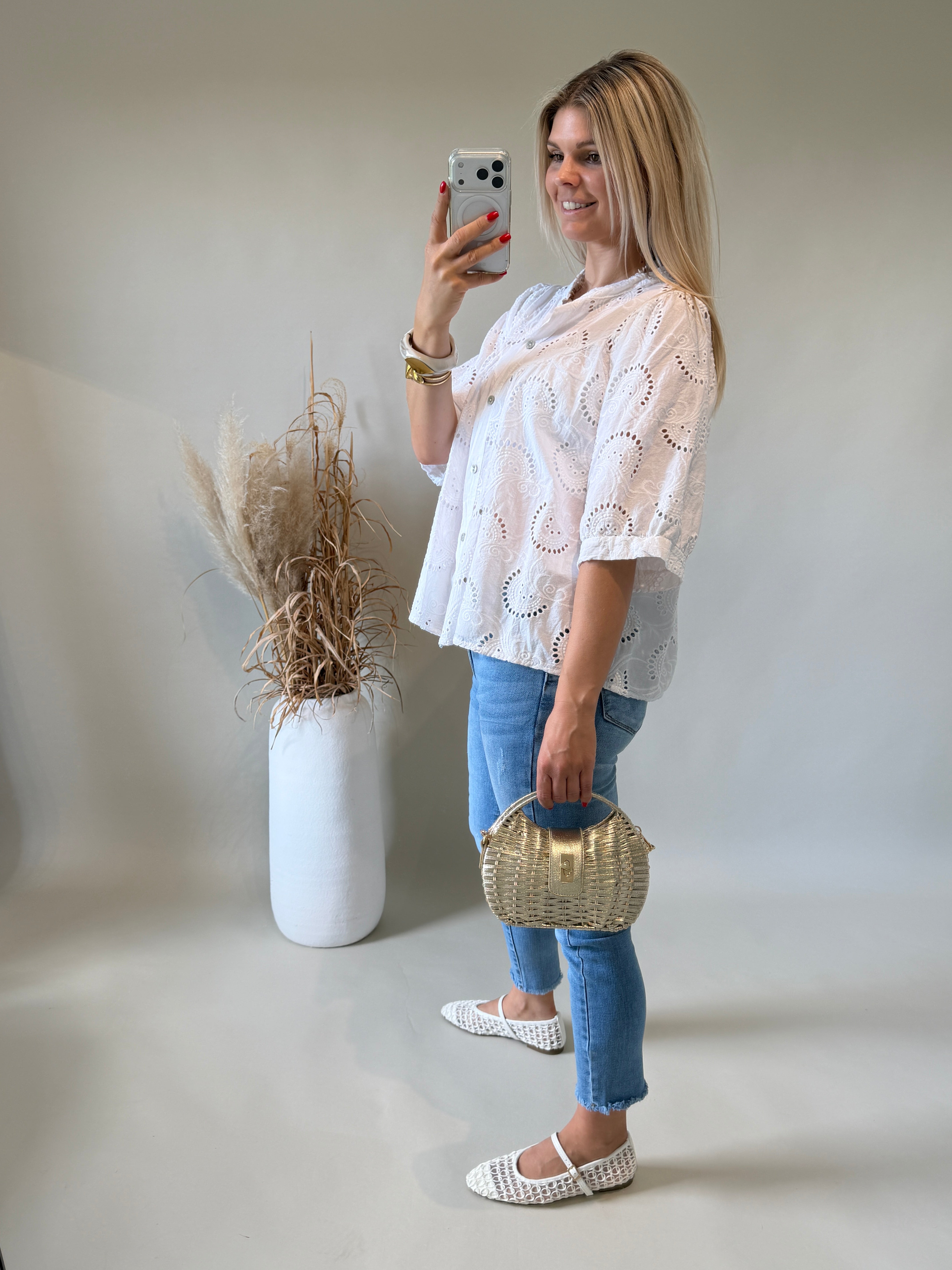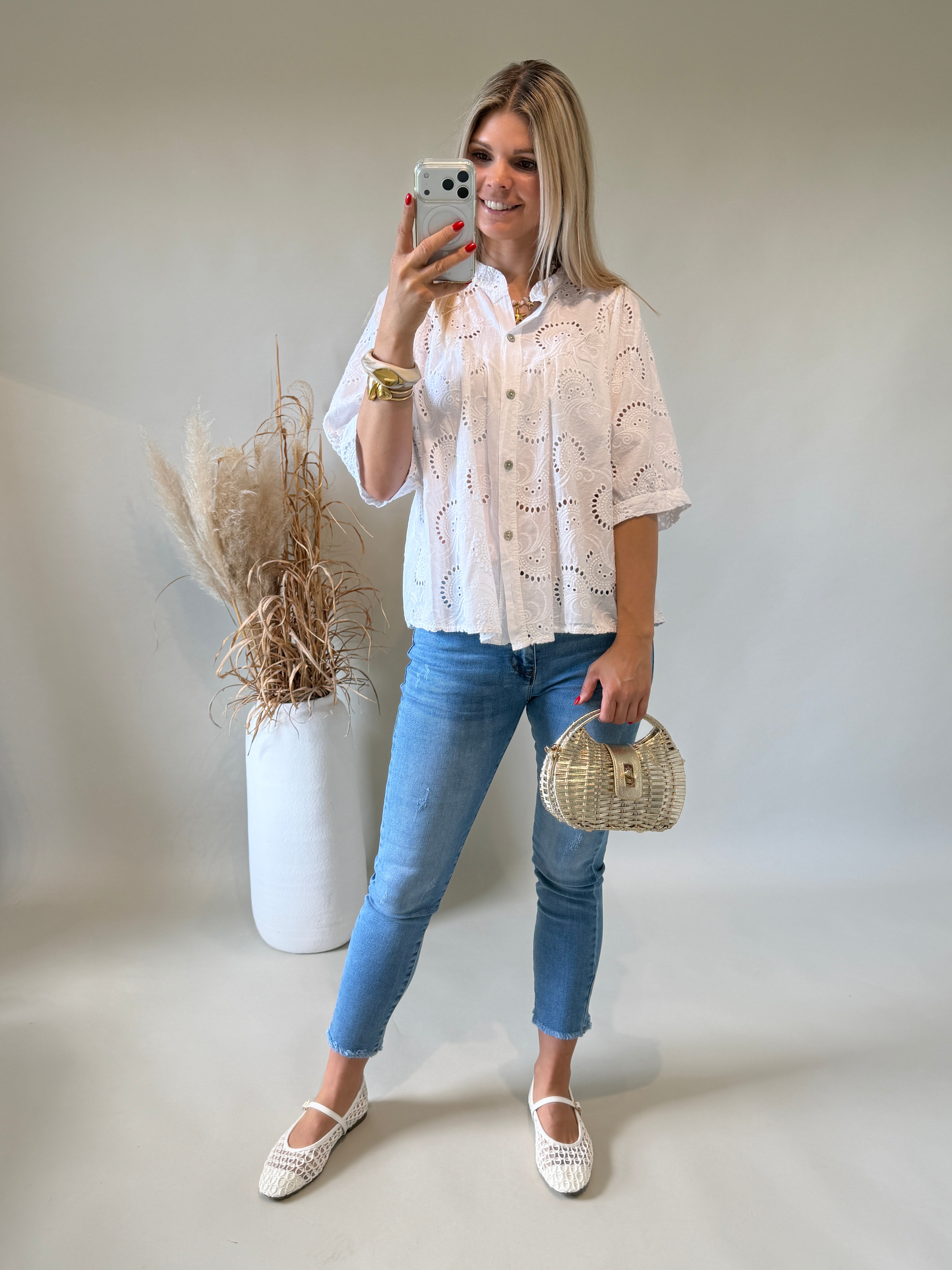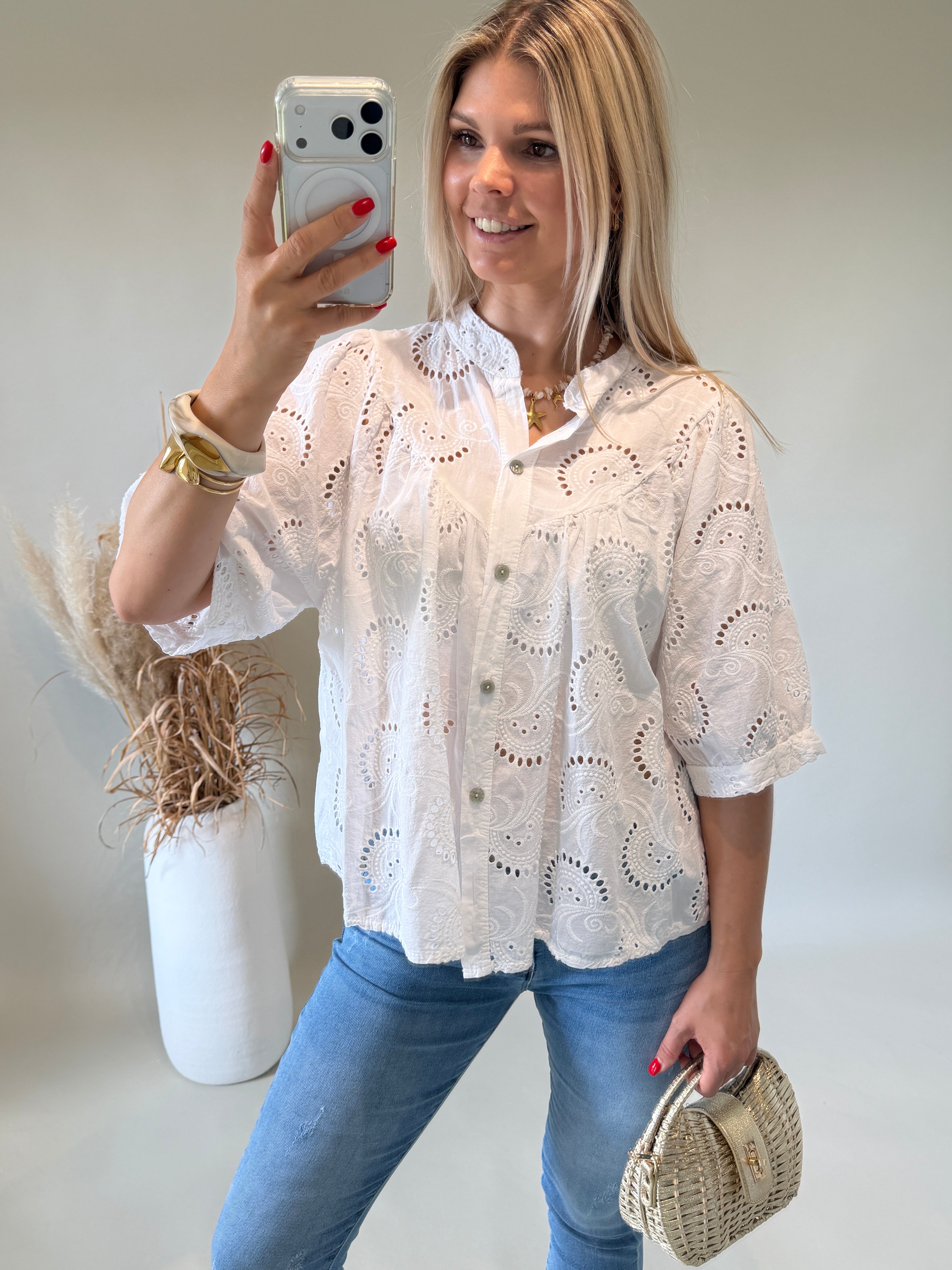 Bluse in Weiß aus Bohospitze ( Kurzarm )