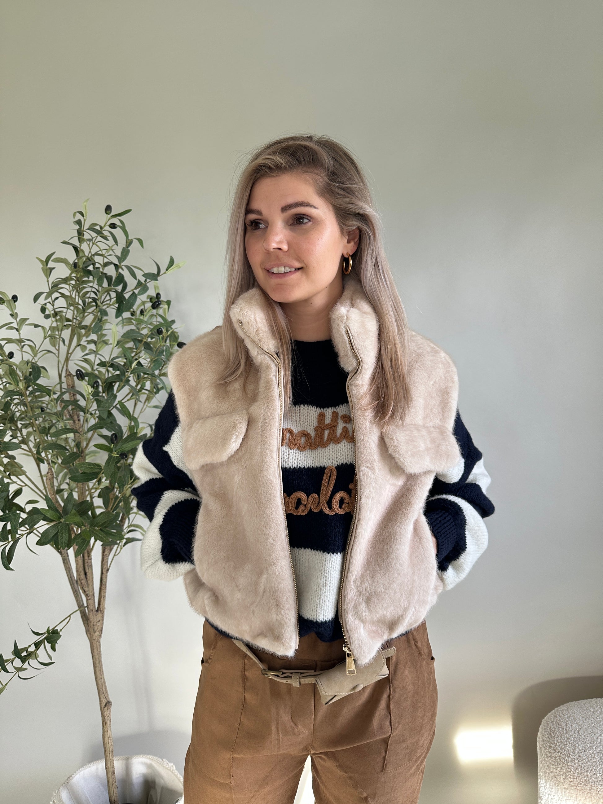 Felljacke in Beige ärmellos