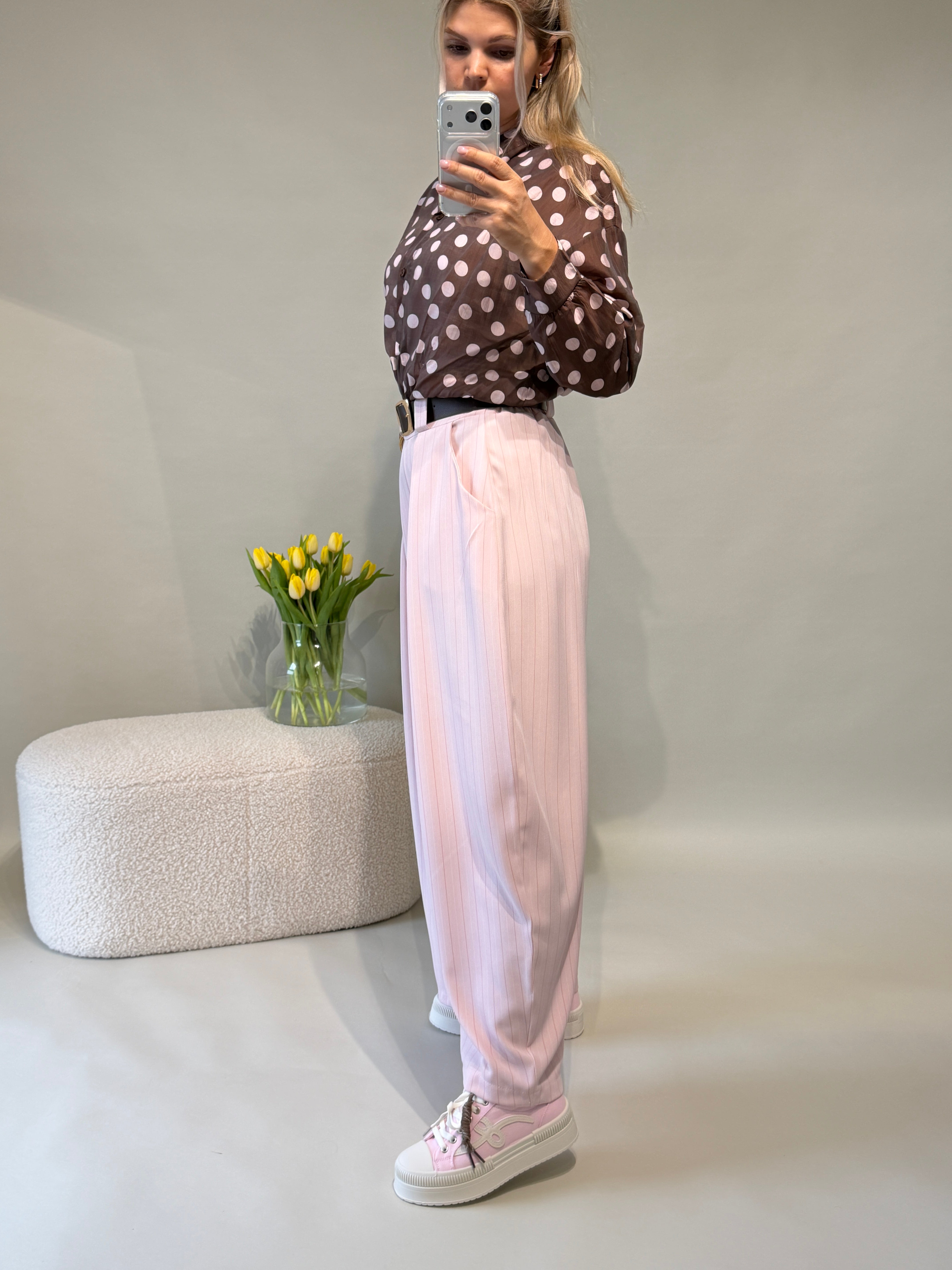 Hose in Rosa mit Nadelstreifen und Braunem Gürtel