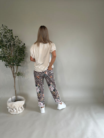 Hose mit Leo Muster und Blumen