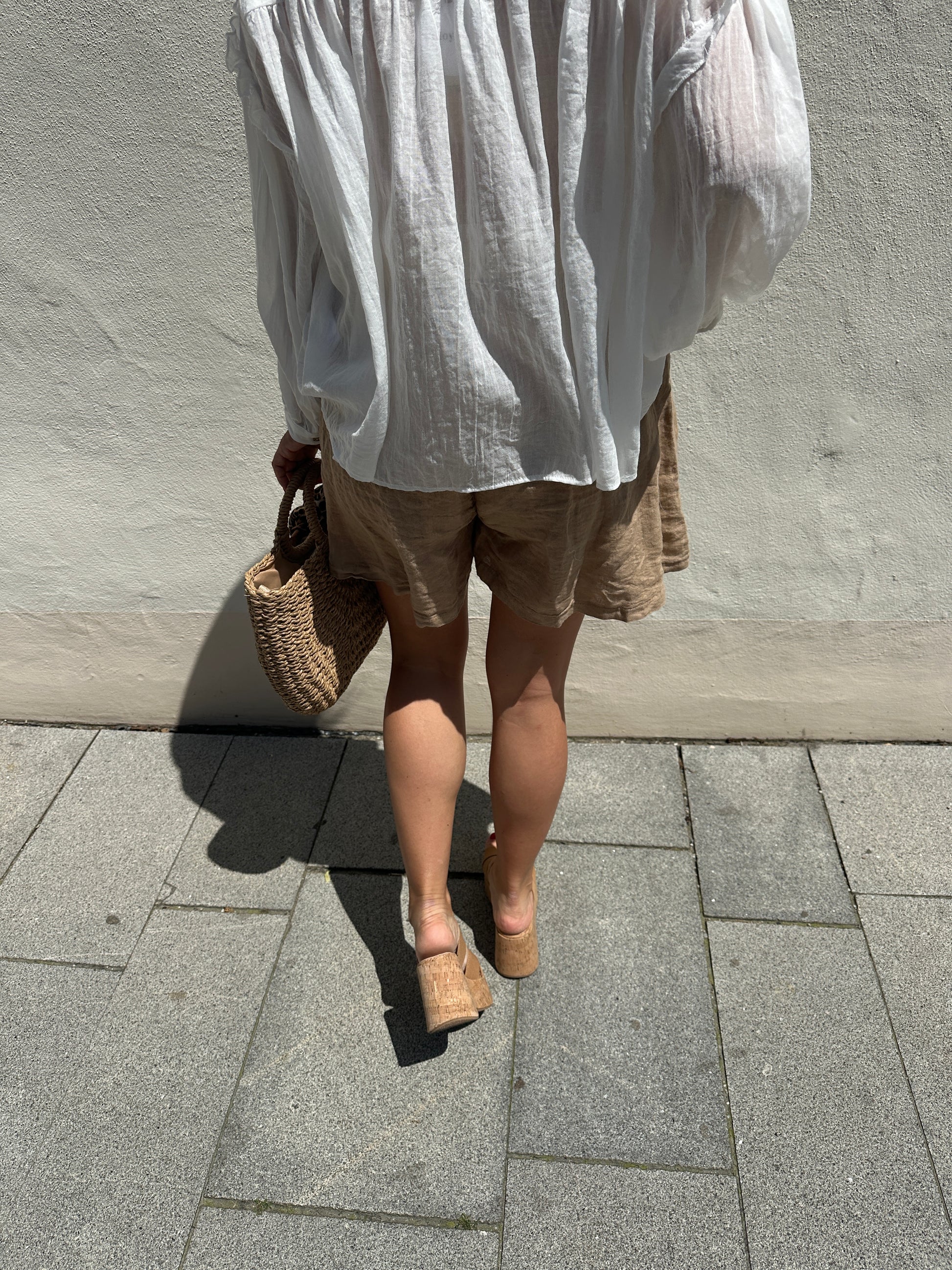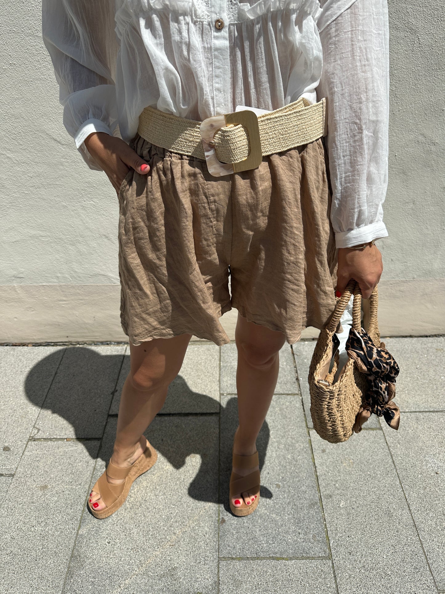 Kurze Leinenhose in Zimt