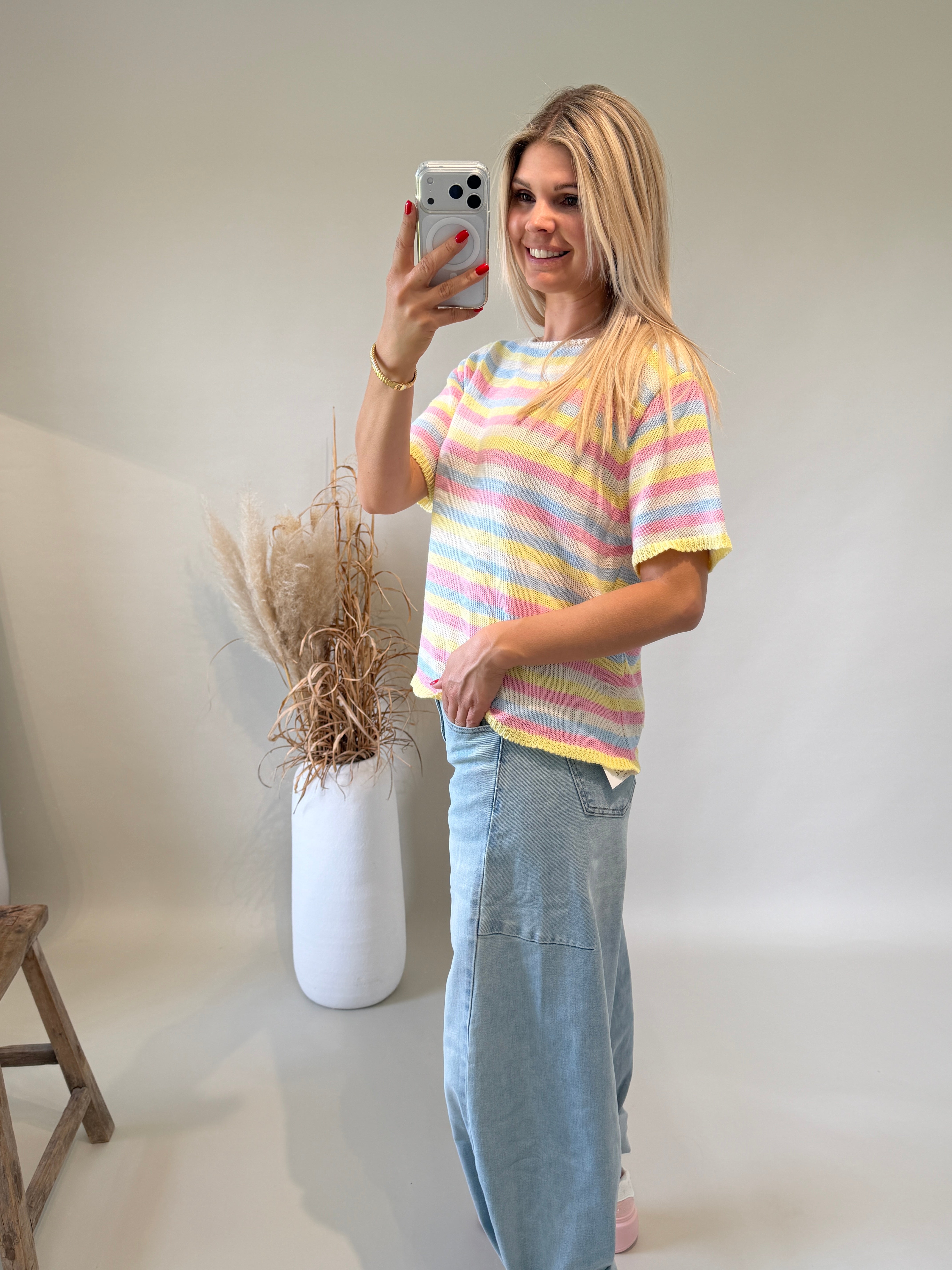 Pullover gestreift in Rosa / Hellblau / Gelb / Weiß