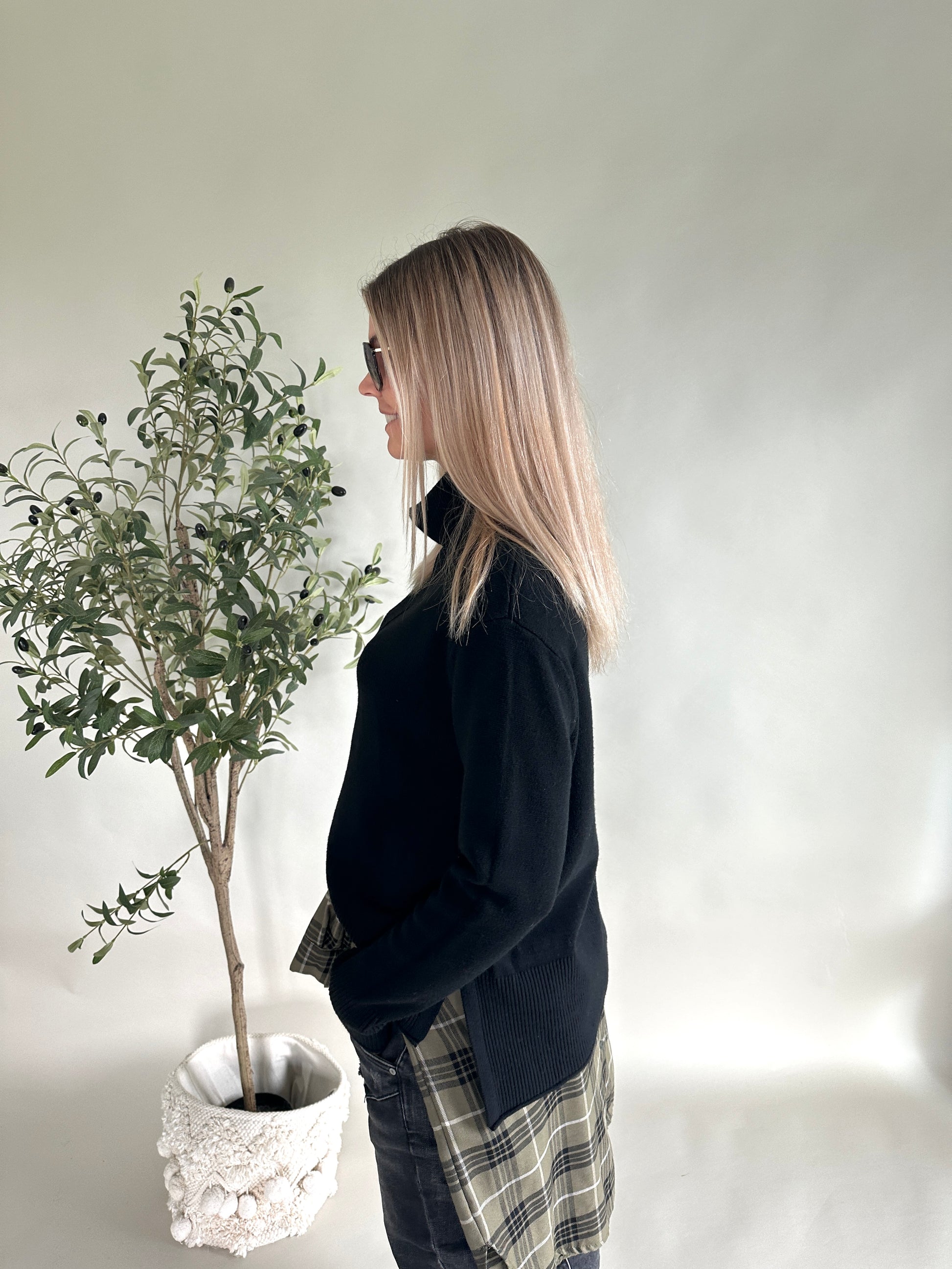Pullover in Schwarz mit weitem Rollkragen und Schlitz an der Seite