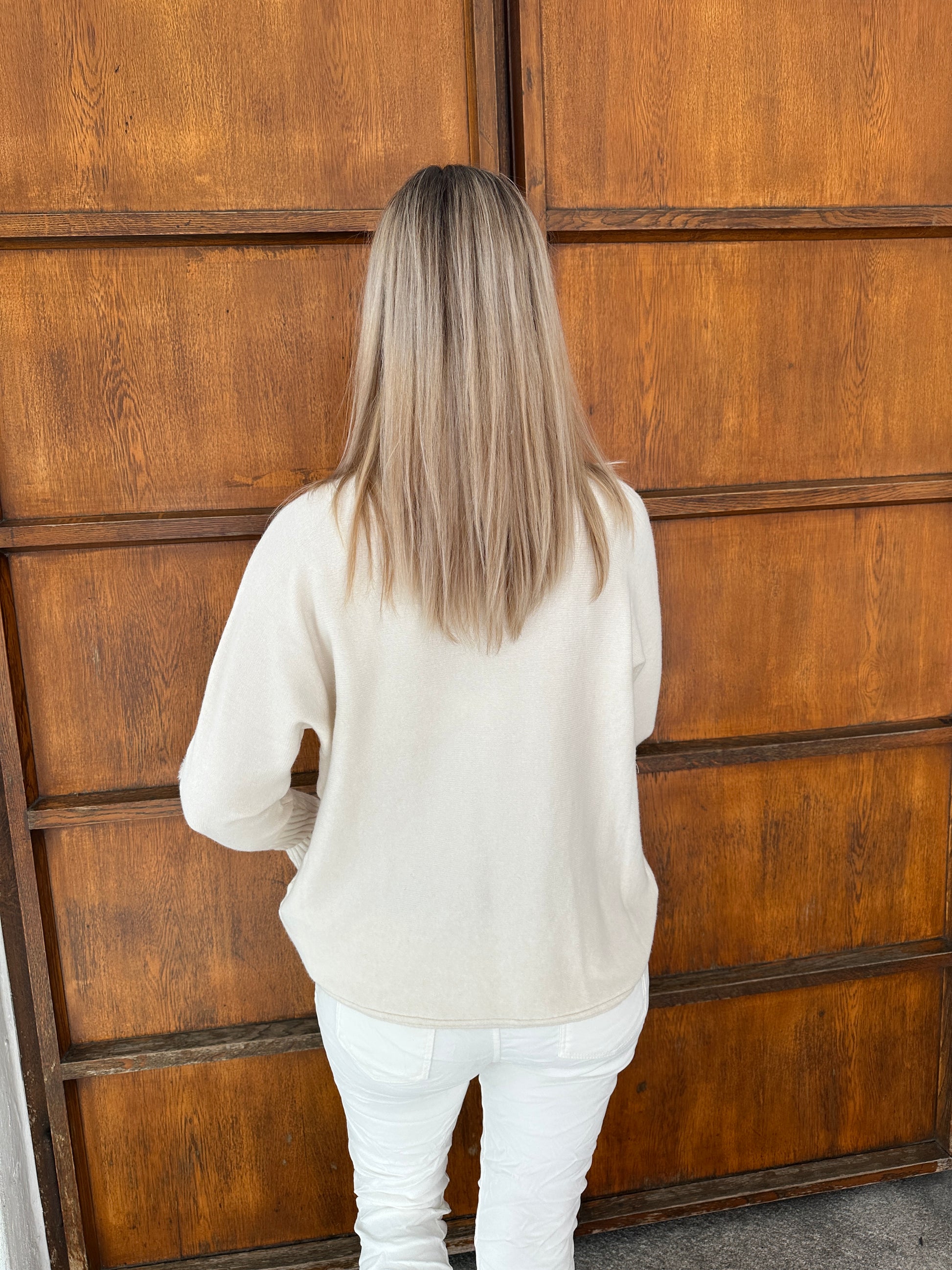 Pullover in Wollweiß mit Kunstpelz-Punkte